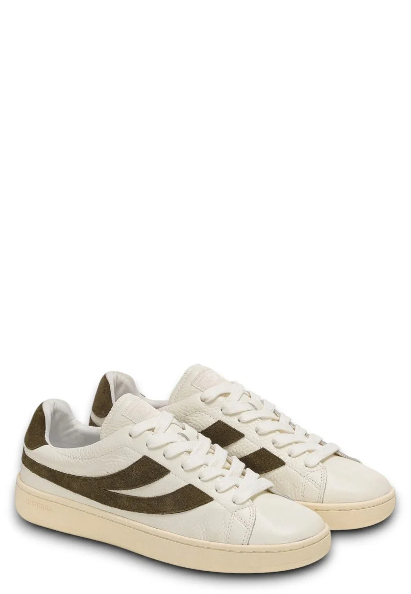 Progettata per una vestibilità superiore, presenta una punta studiata per accogliere comodamente la pianta del piede e un occhiello extra che ne ottimizza la chiusura. La tomaia in pelle morbida e confortevole è impreziosita dal logo a coda di rondine in suede, un chiaro richiamo al campo da tennis, destinazione d’uso originale della calzatura.