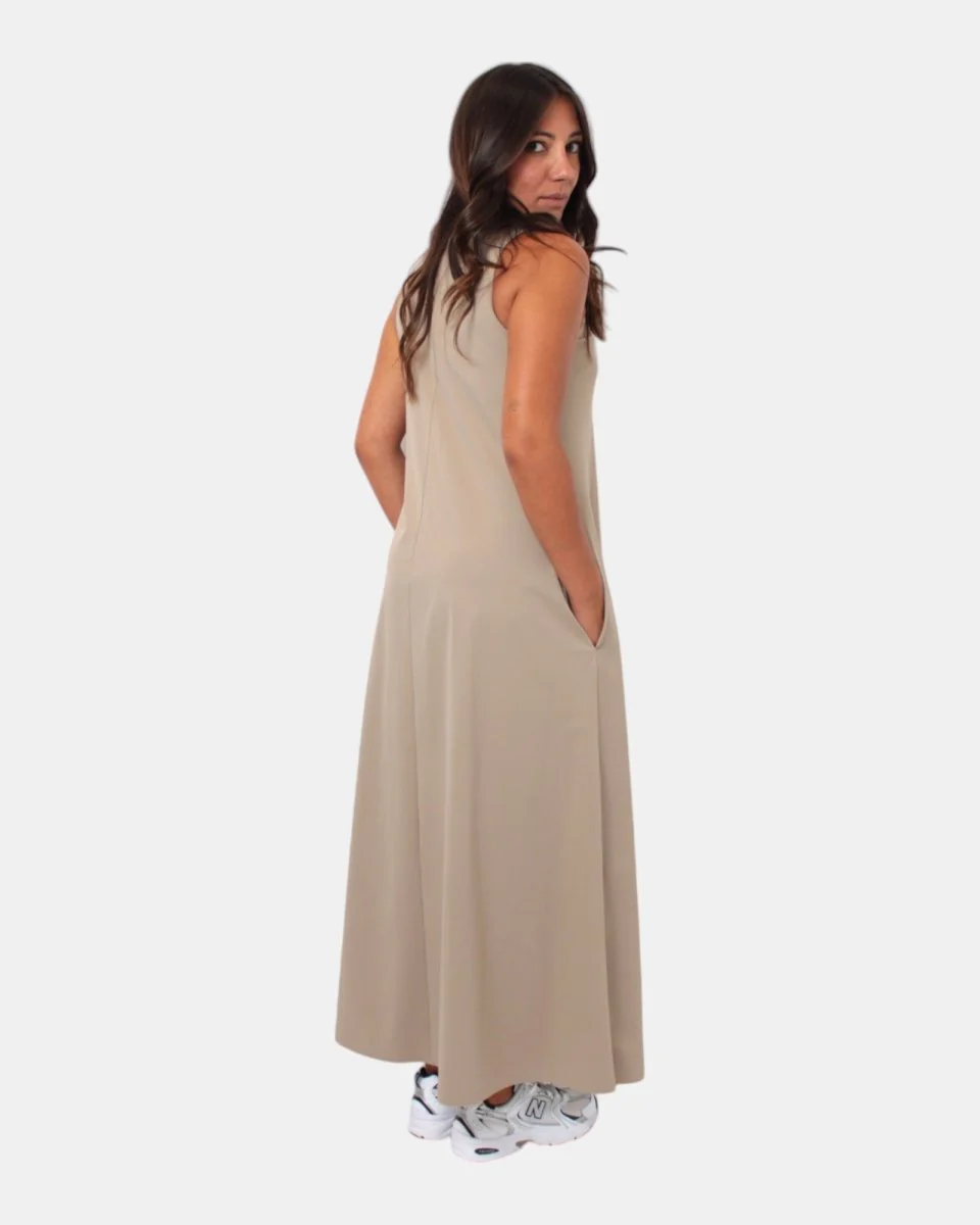 L’abito smanicato donna Max Mara in colore tortora è un capolavoro di eleganza e comfort. Realizzato con un mix di 87% poliammide e 13% elastan, offre una combinazione di resistenza e leggerezza, con una vestibilità leggermente elasticizzata che segue le linee del corpo con grazia. Il design smanicato conferisce un aspetto raffinato e moderno, id