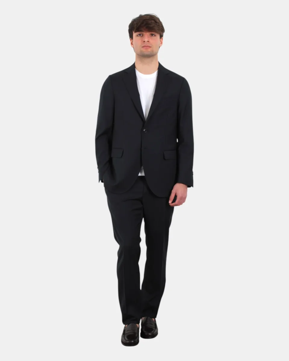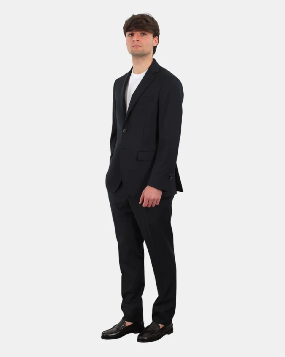 L’abito monopetto di Bollani presenta chiusura a due bottoni, due spacchetti laterali e due tasche a con pattina, il pantalone presenta due tasche frontali, chiusura con zip e bottone, dalla mano fresca dovuta alla sua composizione in 100% lana vergine. Si consiglia lavaggio a secco. Il modello è alto 1,78 m e indossa una 48