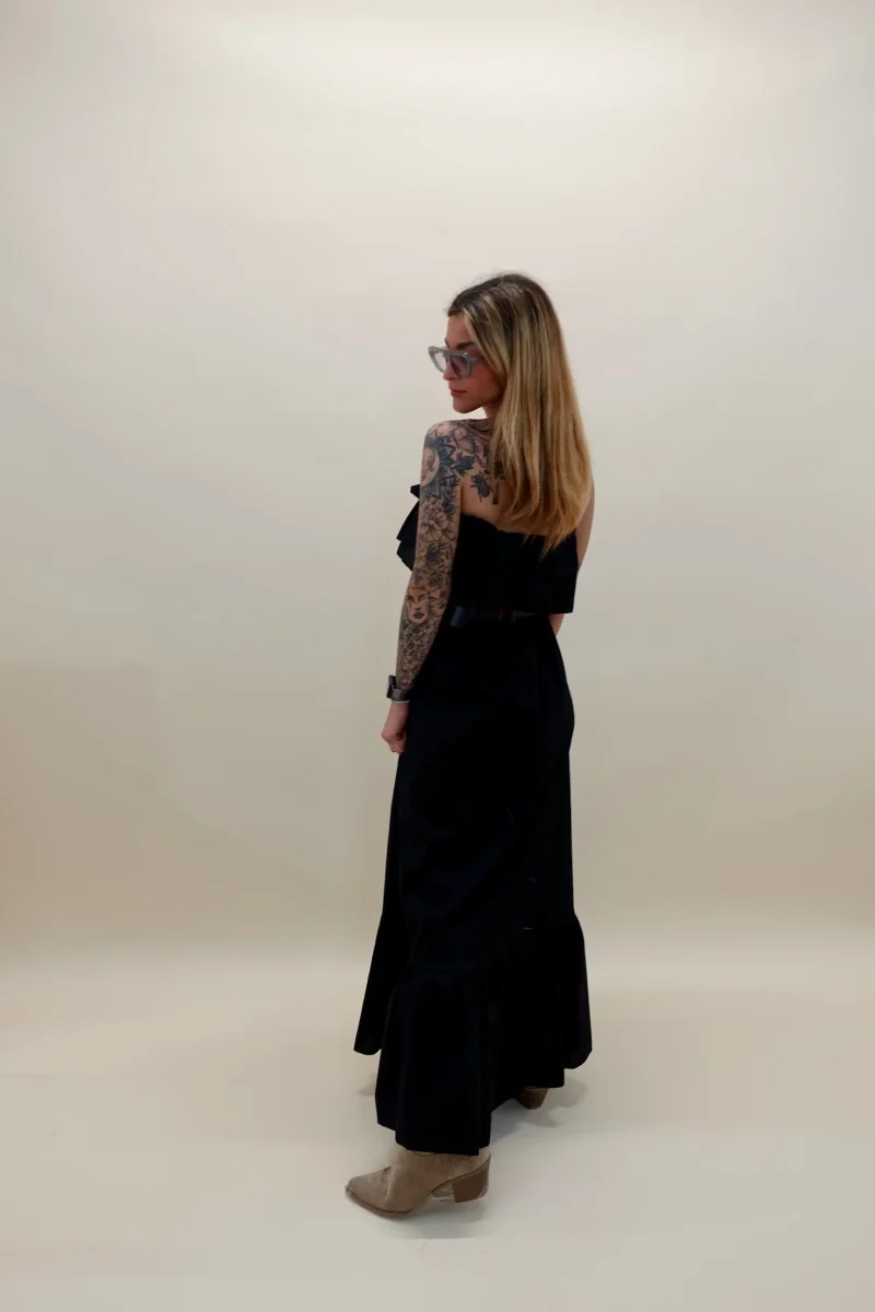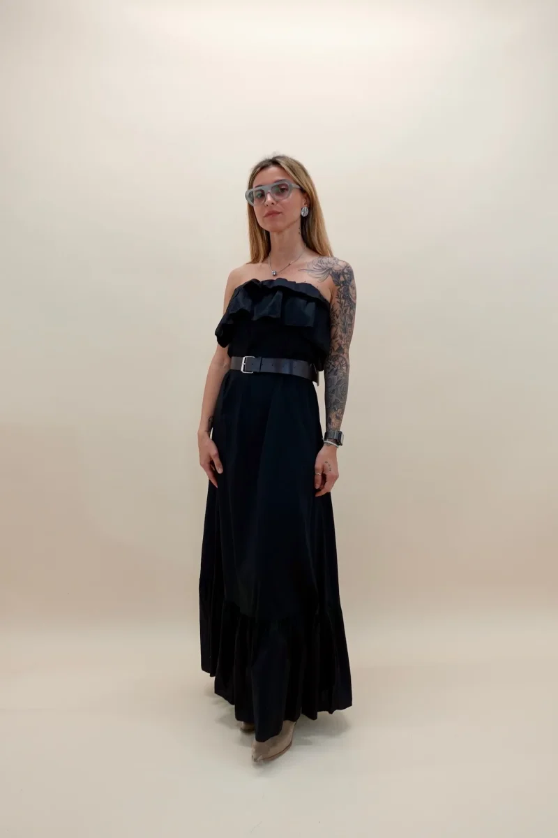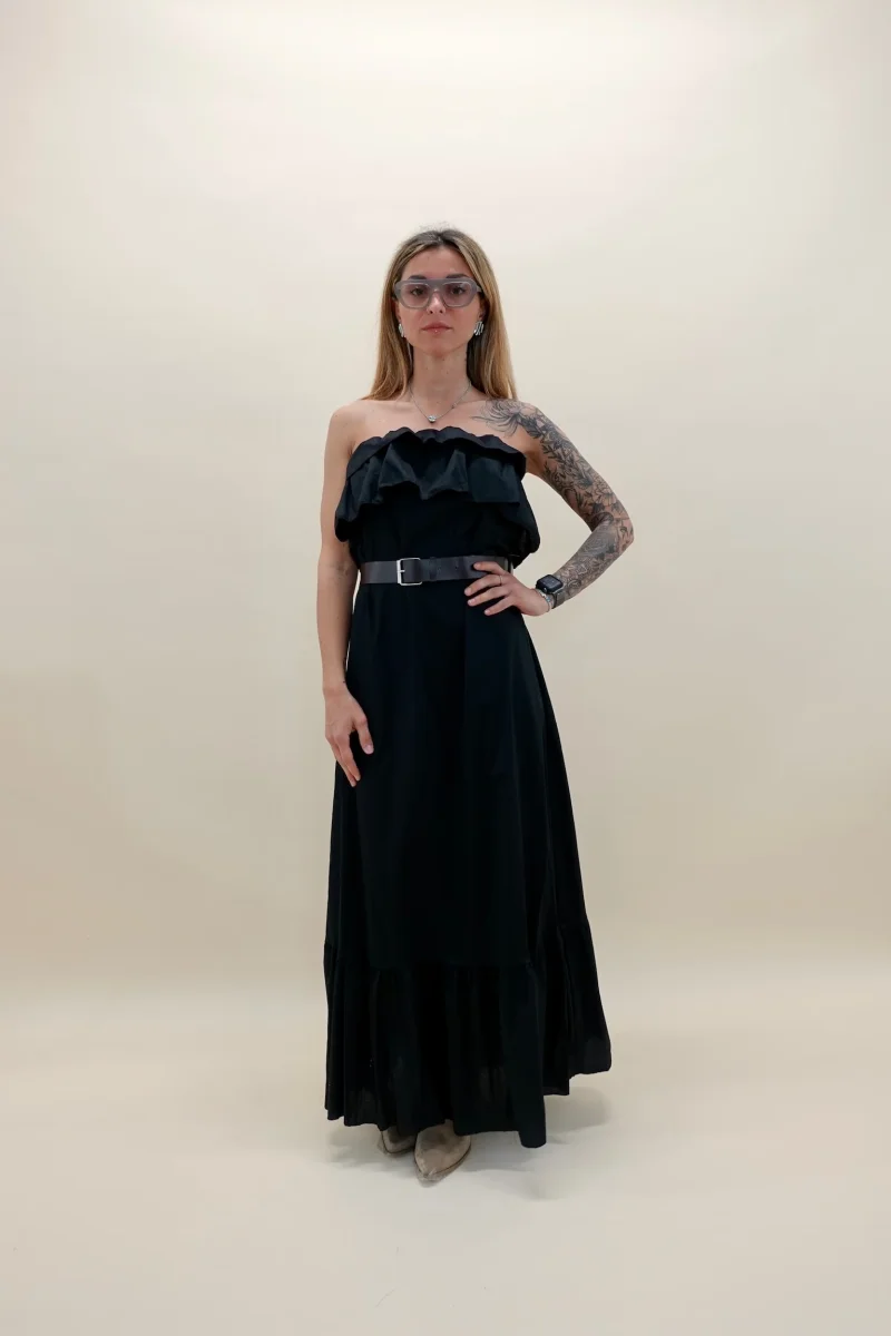 Abito a fascia in cotone con elastico in vita, cinturina inclusa