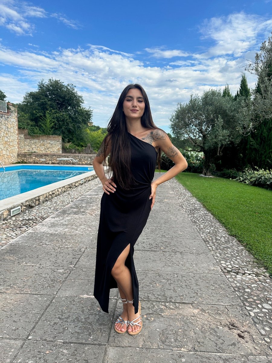 Abito monospalla con cut out laterale e spacco