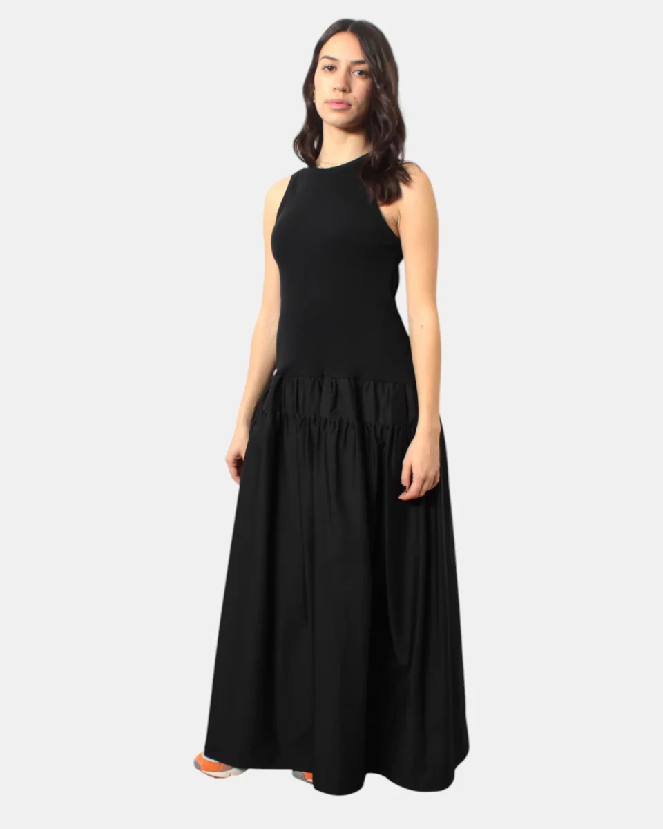 L’abito di Solotre presenta fantasia monocolore, fondo ampio nella parte inferiore e canotta nella parte superiore, dalla mano fresca dovuta alla sua composizione in 100% cotone. Si consiglia lavaggio a massimo 30 gradi. La modella è alta 1,68 m e indossa una 2
