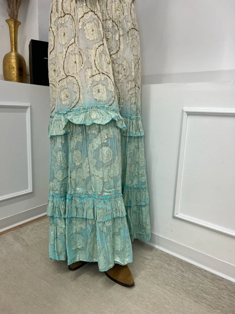 Abito lungo lavorato con balze