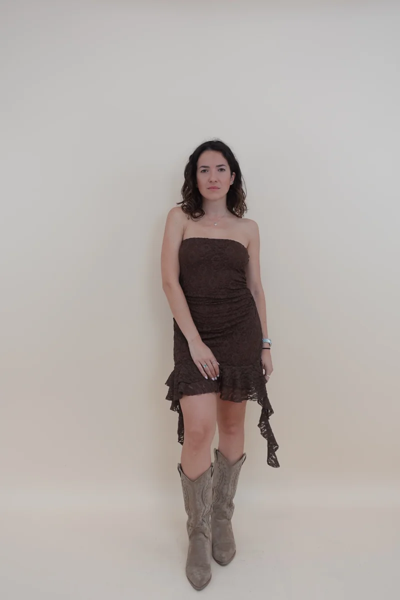 Abito a fascia in pizzo con sottoveste