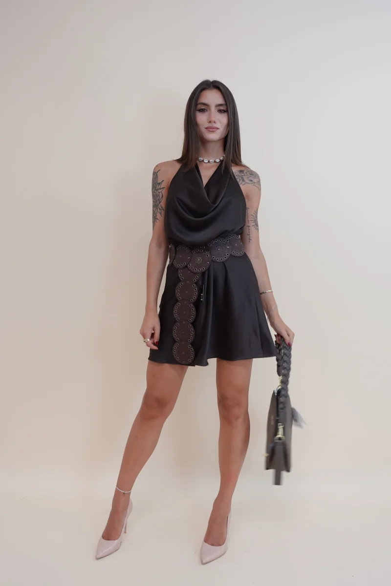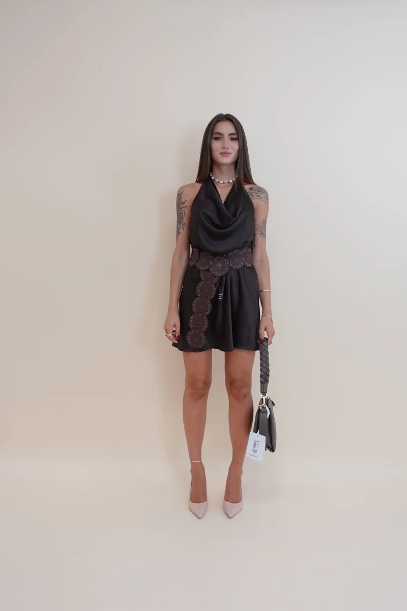 Abito in effetto raso con scollo morbido e schiena scoperta