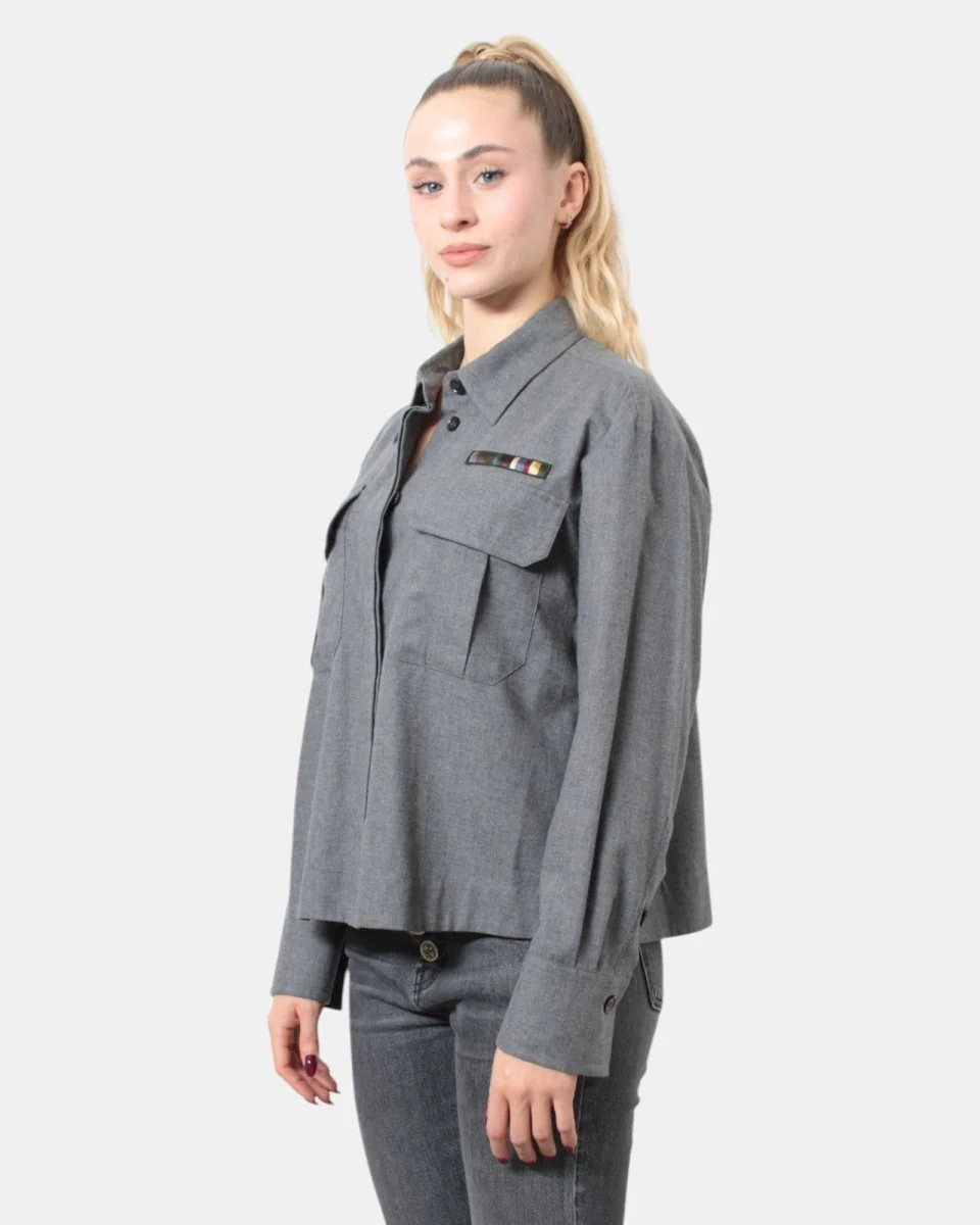 La camicia di Academia presenta chiusura frontale a cinque bottoni nascosti, due tasche a filetto con pattina sul petto e patch sul petto, due spacchetti laterali, sulle maniche sono presenti due bottoni . Dal tessuto morbido composto in 100% cotone. Si consiglia lavaggio a max 30 gradi. La modella è alta 1,67 m e indossa una L