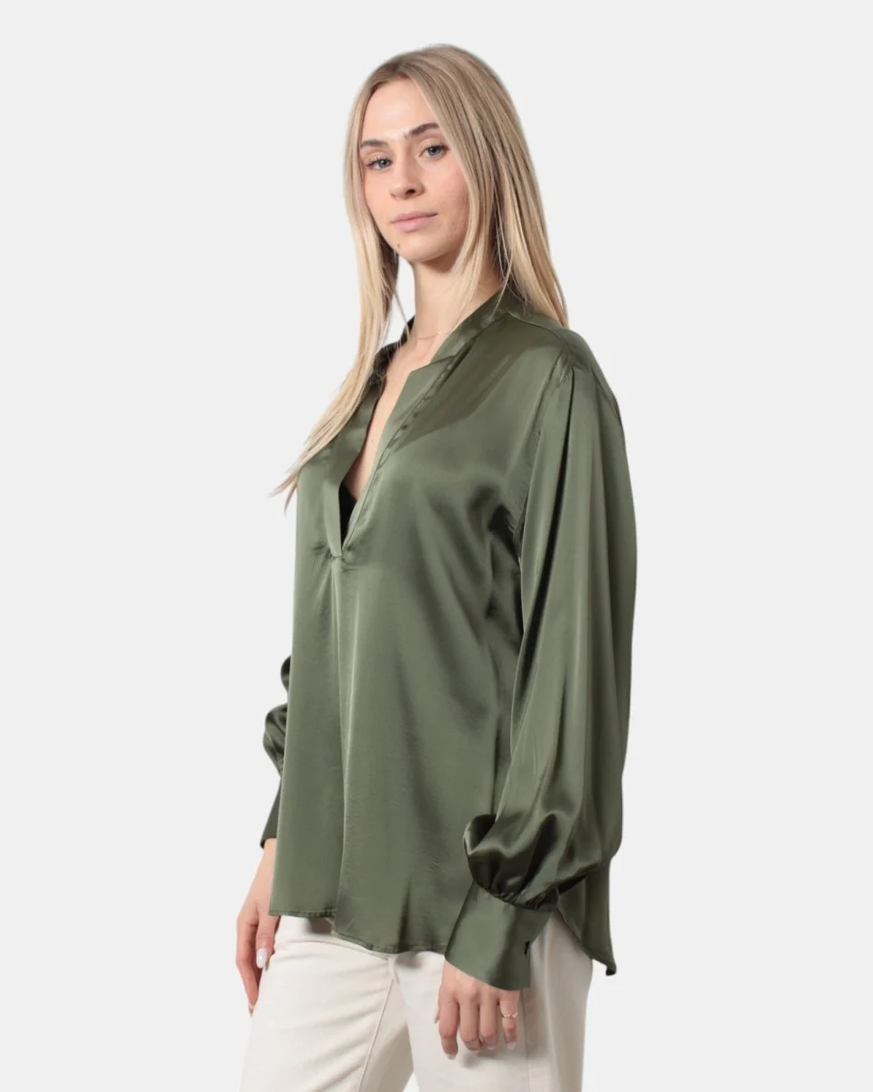 La maglia di Academia presenta scollatura frontale a V, un bottone sul fondo della manica, dalla sua morbida composizione in 97% viscosa e 3% spandex. Si consiglia lavaggio a max 30 gradi . La modella è alta 1,67 m e indossa una L