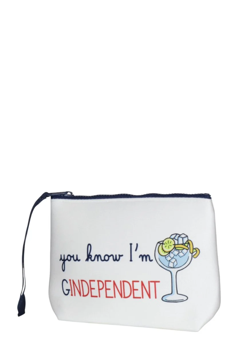 Con un messaggio spiritoso che recita You know I’m Gindependent , questa pochette non solo fa una dichiarazione di indipendenza, ma aggiunge anche un tocco di humor al tuo look. Realizzata con materiali di alta qualità, garantisce resistenza e durata nel tempo, mentre la sua dimensione compatta la rende perfetta per contenere il necessario senza ingombrare.