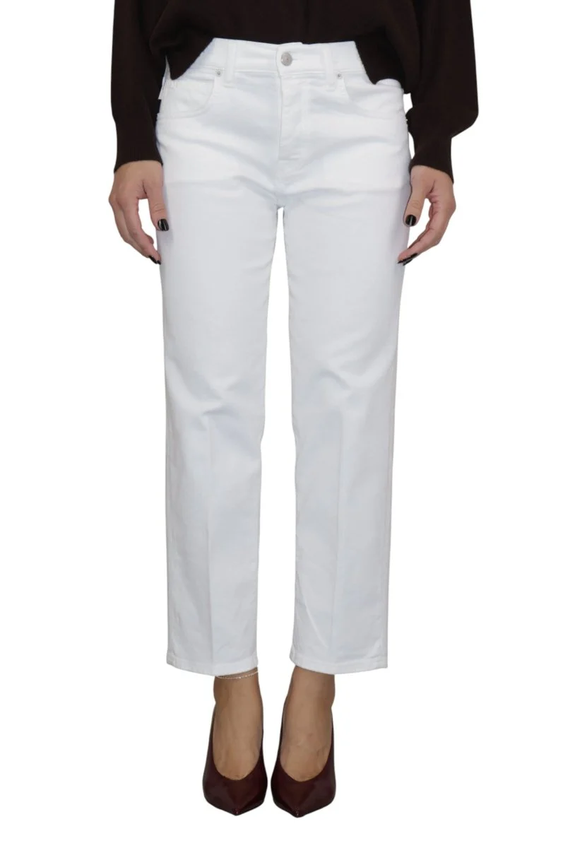 Realizzati con un tessuto di alta qualità, questi jeans garantiscono la massima comodità e una vestibilità duratura. La leggera percentuale di elastan consente una libertà di movimento ideale, rendendoli perfetti per ogni momento della tua giornata. Il colore bianco aggiunge un tocco fresco e pulito, versatile per qualsiasi outfit.
