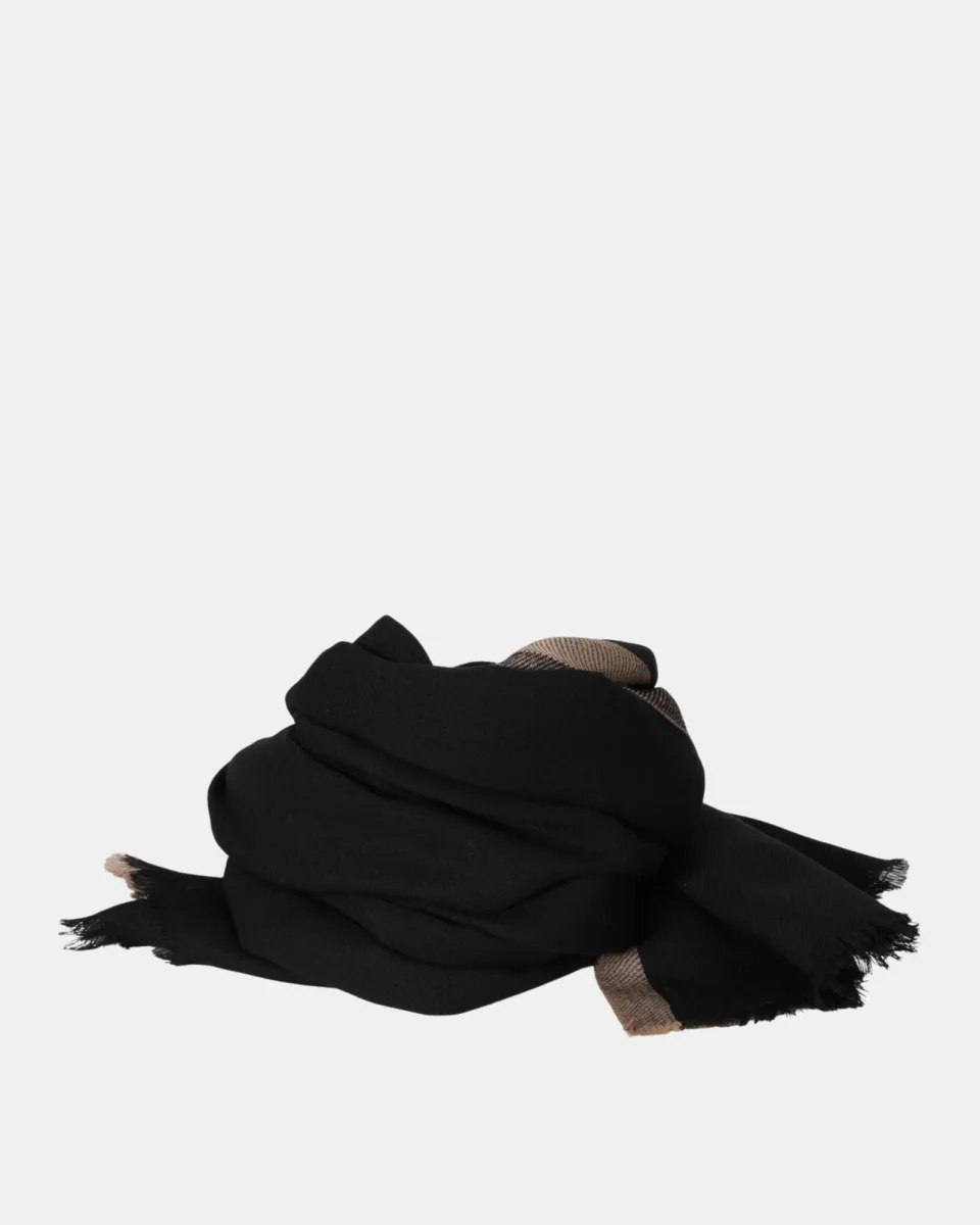 La sciarpa di Altea presenta bordini in contrasto, dalla mano calda dovuta alla sua composizione in 100% lana