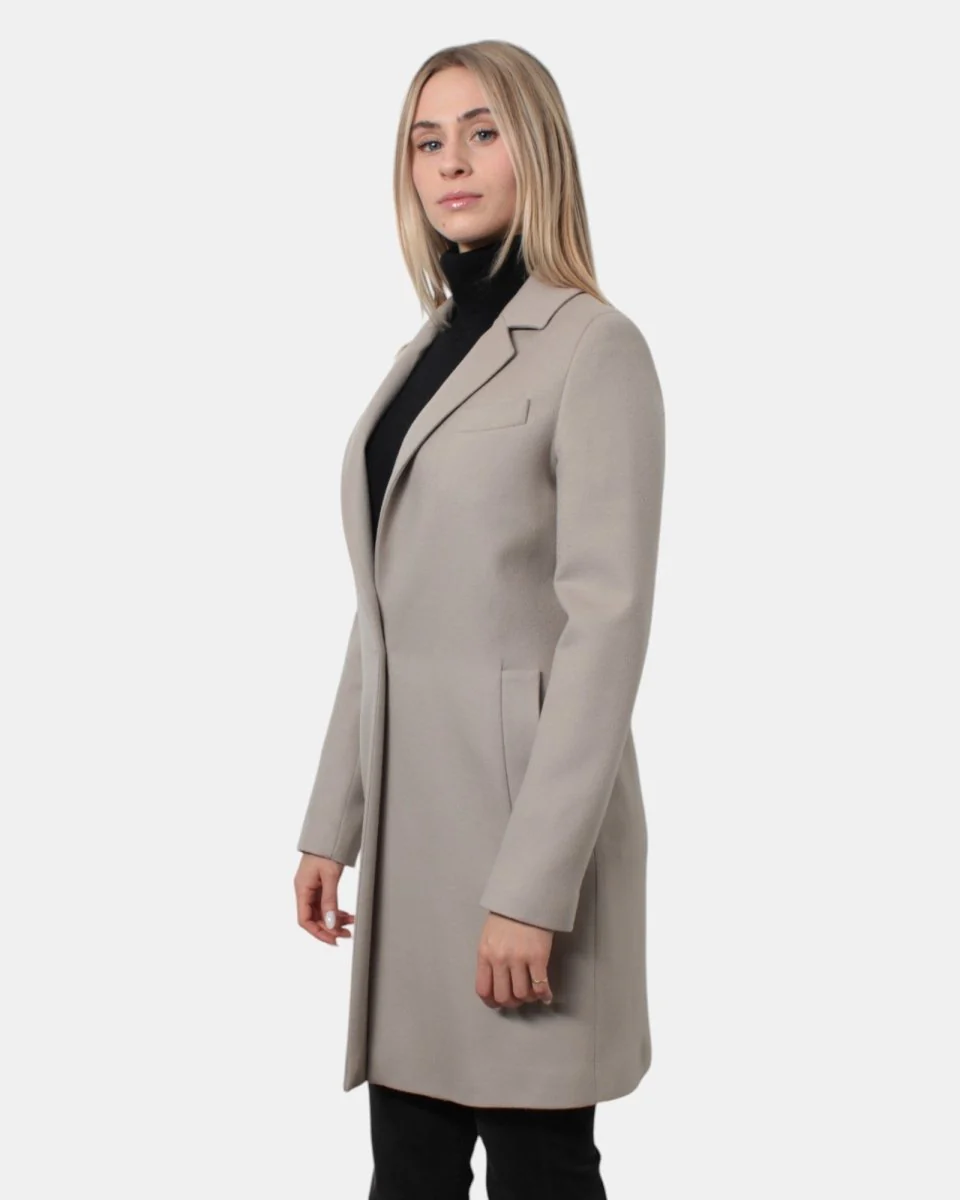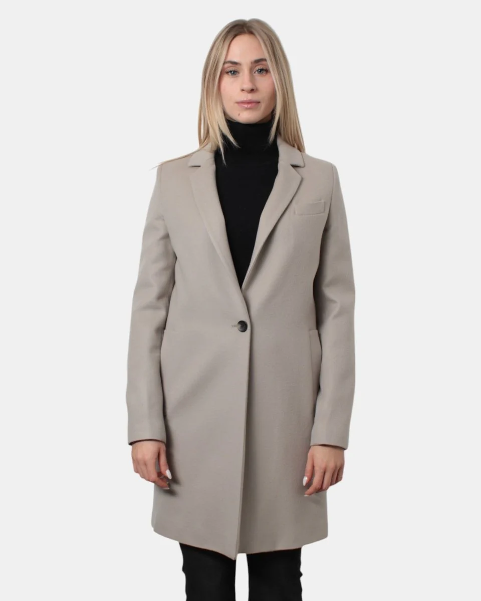 Il cappotto di ”ANNIEPARIS” presenta monopetto un bottone, due tasche a filo laterali e un taschino sul petto, presenta vestibilità slim, caratterizzato da un tessuto corposo e caldo dovuto alla sua composizione in 70% lana vergine, 20% poliamide e 10% cashmere. Si consiglia lavaggio a secco. La modella è alta 1,70 m e indossa una 40