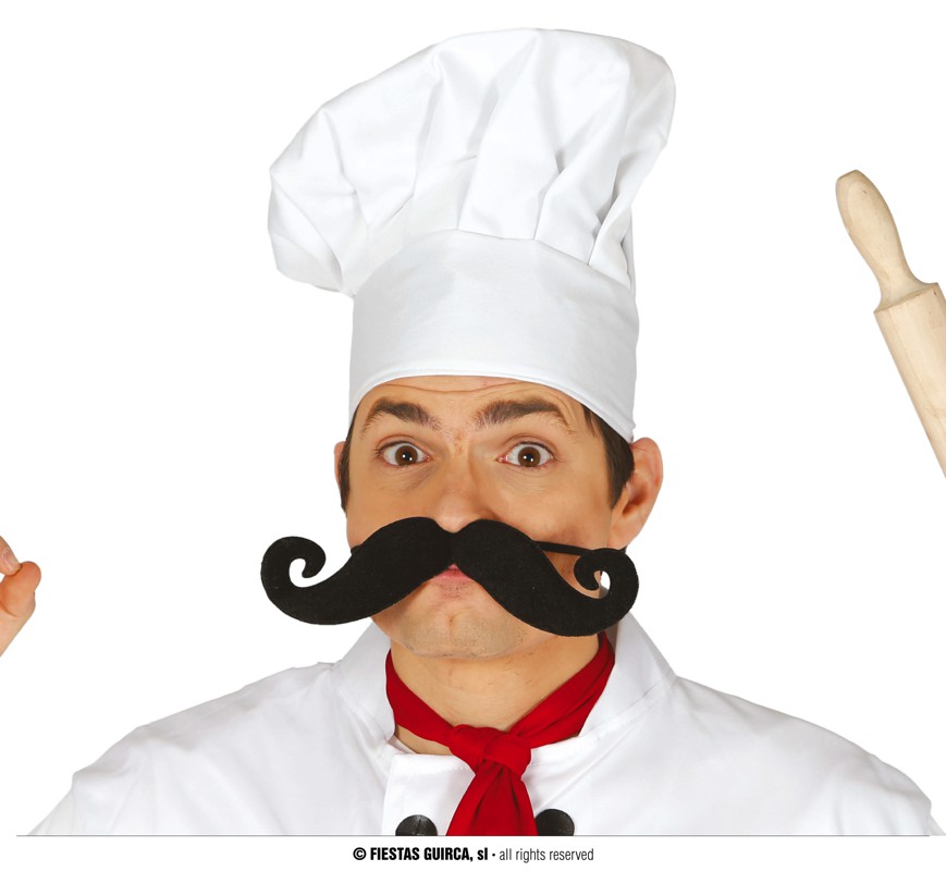 Baffi da Chef Grandi Con Elastico Neri Accessori Travestimento Carnevale