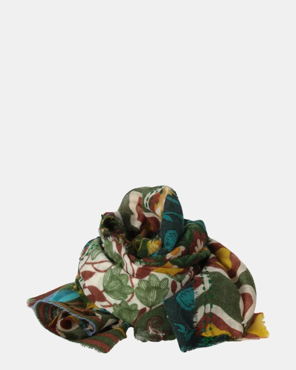La sciarpa di Baobab presenta fantasia brand dalla mano soffice e calda dovuta alla sua composizione in 100% lana, si consiglia il lavaggio a mano