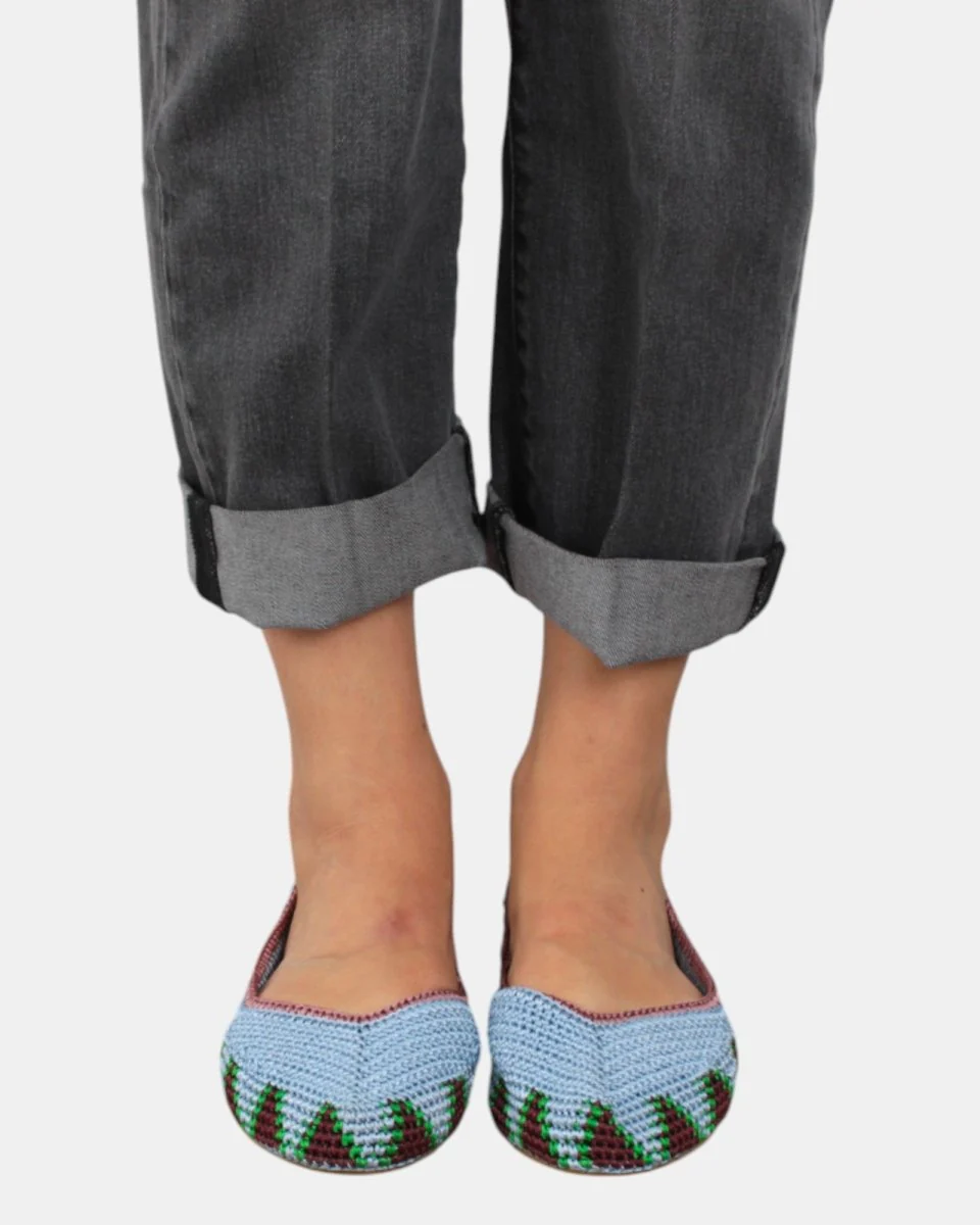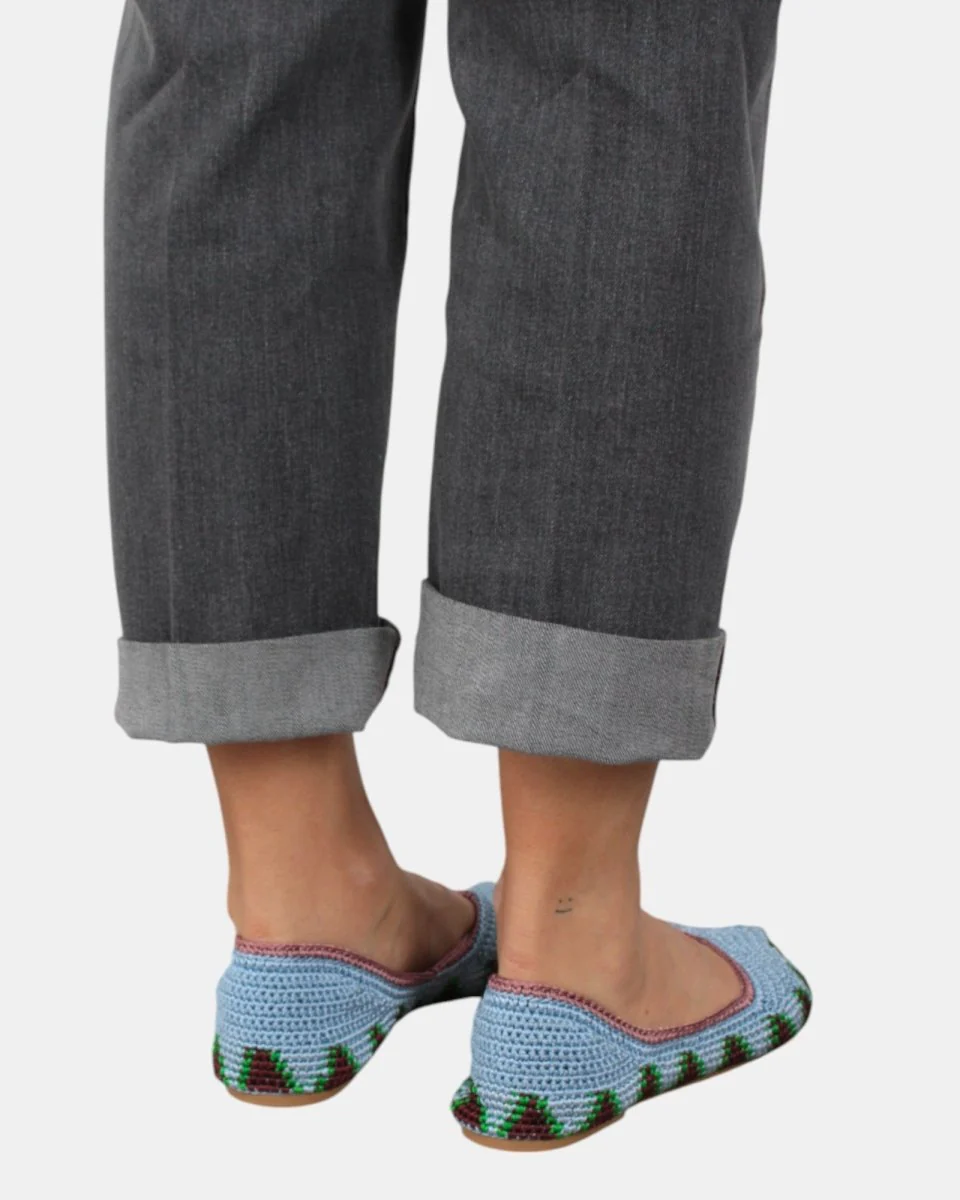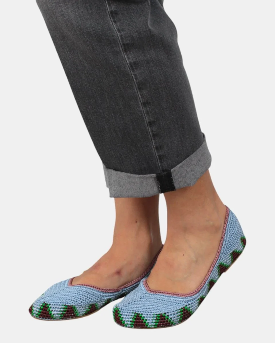 La Ballerina Kashura presenta:– COMPOSIZIONE: 100% viscosa– VESTIBILITA: Regolare– DETTAGLI: Tomaia realizzata in tessuto crochet e Fondo in gomma