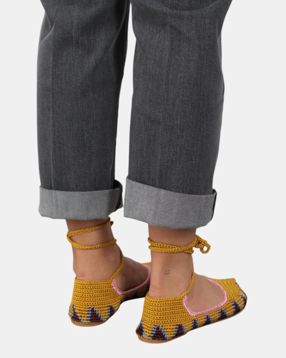 – DETTAGLI: Tomaia realizzata in tessuto crochet, Fondo in gomma e Allacciatura alla schiava