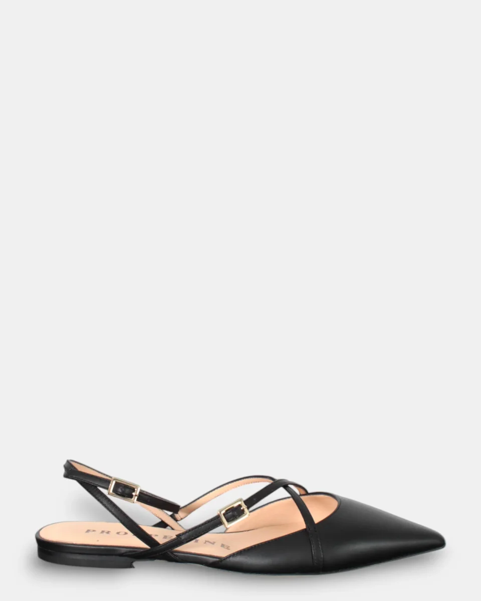 Le ballerine di Prosperine presentano fantasia monocolore, cinturino con fibietta sul collo e sulla caviglia, suola in cuoio con tacchetto. Calzata regolare