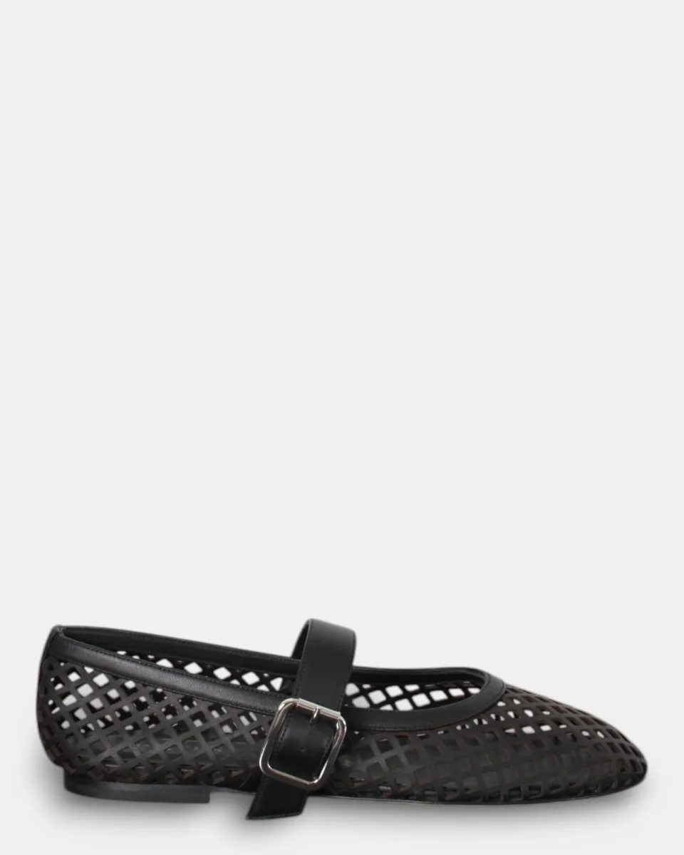 Le ballerine di Prosperine presentano fantasia forellata, cinturino con fibietta sul collo, suola in cuoio con tacchetto. Calzata regolare