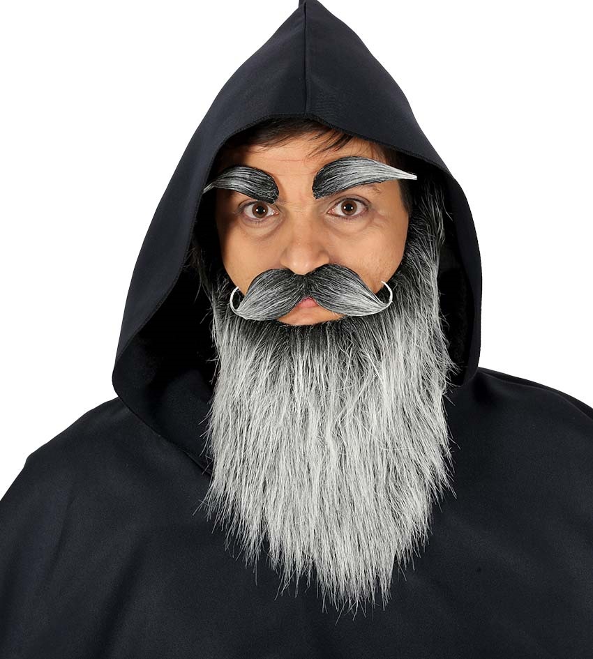 BARBA LUNGA GRIGIA CON BAFFI E SOPRACCIGLIAper travestimento frate nano