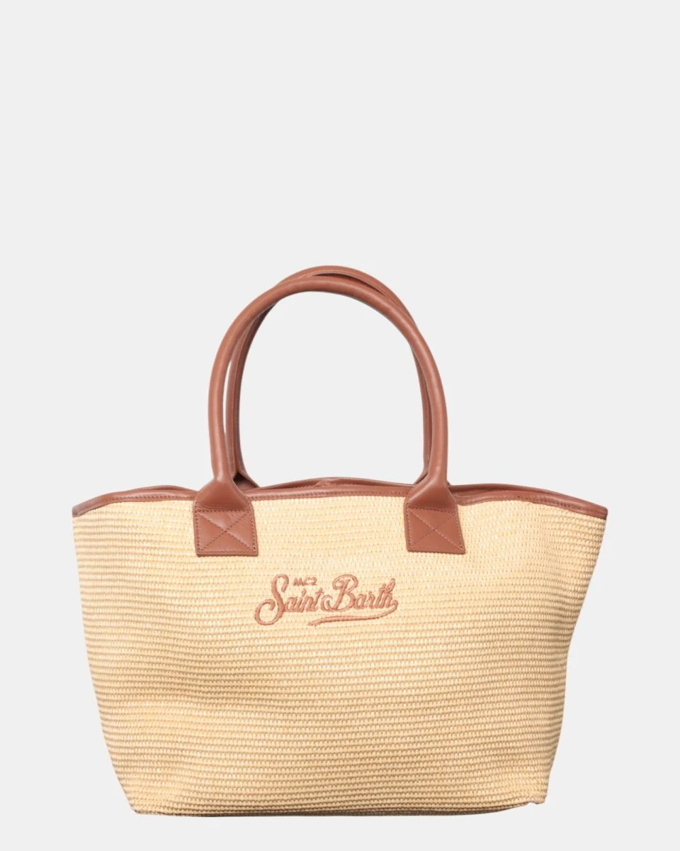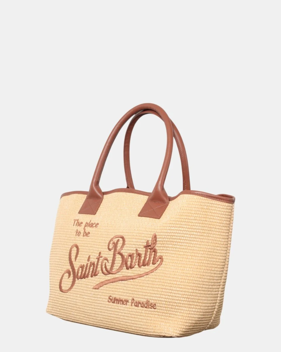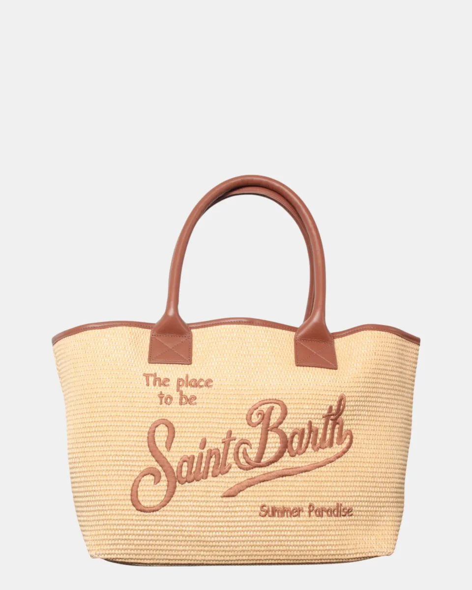 – DETTAGLI: Ricamo Saint Barth blu frontale, Manici in cotone e tasca interna con chiusura zip