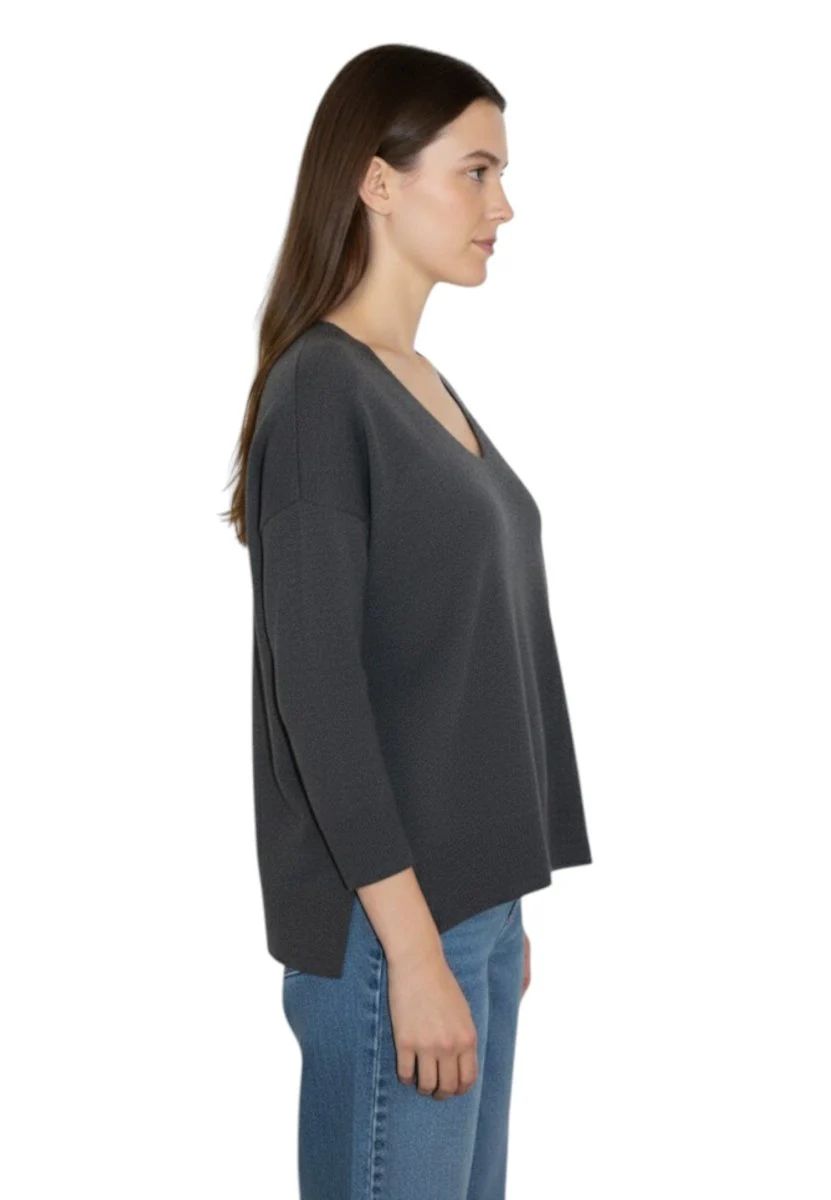 - Design: Scollo a V, maniche lunghe e taglio morbido per un comfort che dura tutto il giorno.