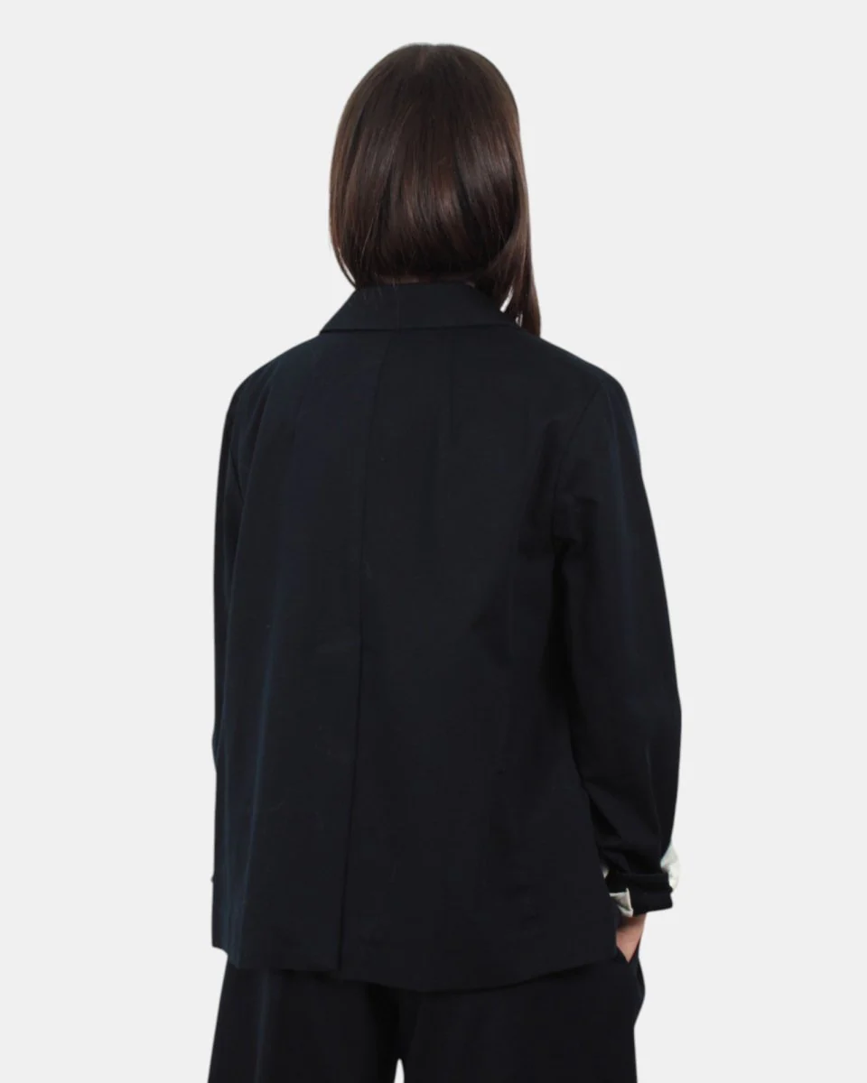 La Blazer doppiopetto di Jucca presenta due tasche a filo con pattina frontali, chiusura a 4 bottoni, dalla mano morbida dovuta alla sua composizione in 100% COTONE. Si consiglia lavaggio a mano. La modella è alta 1,68 m e indossa una 44