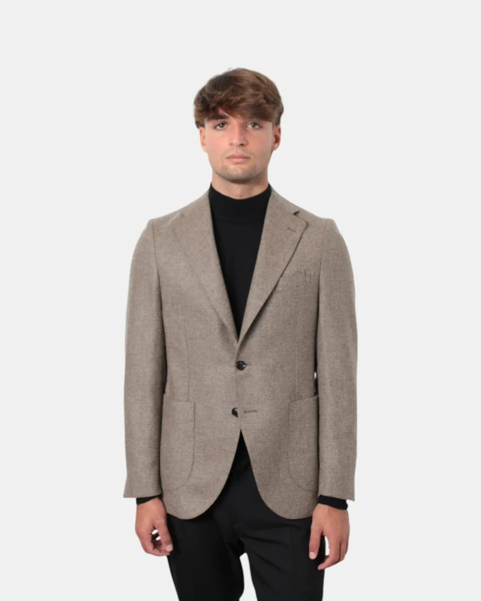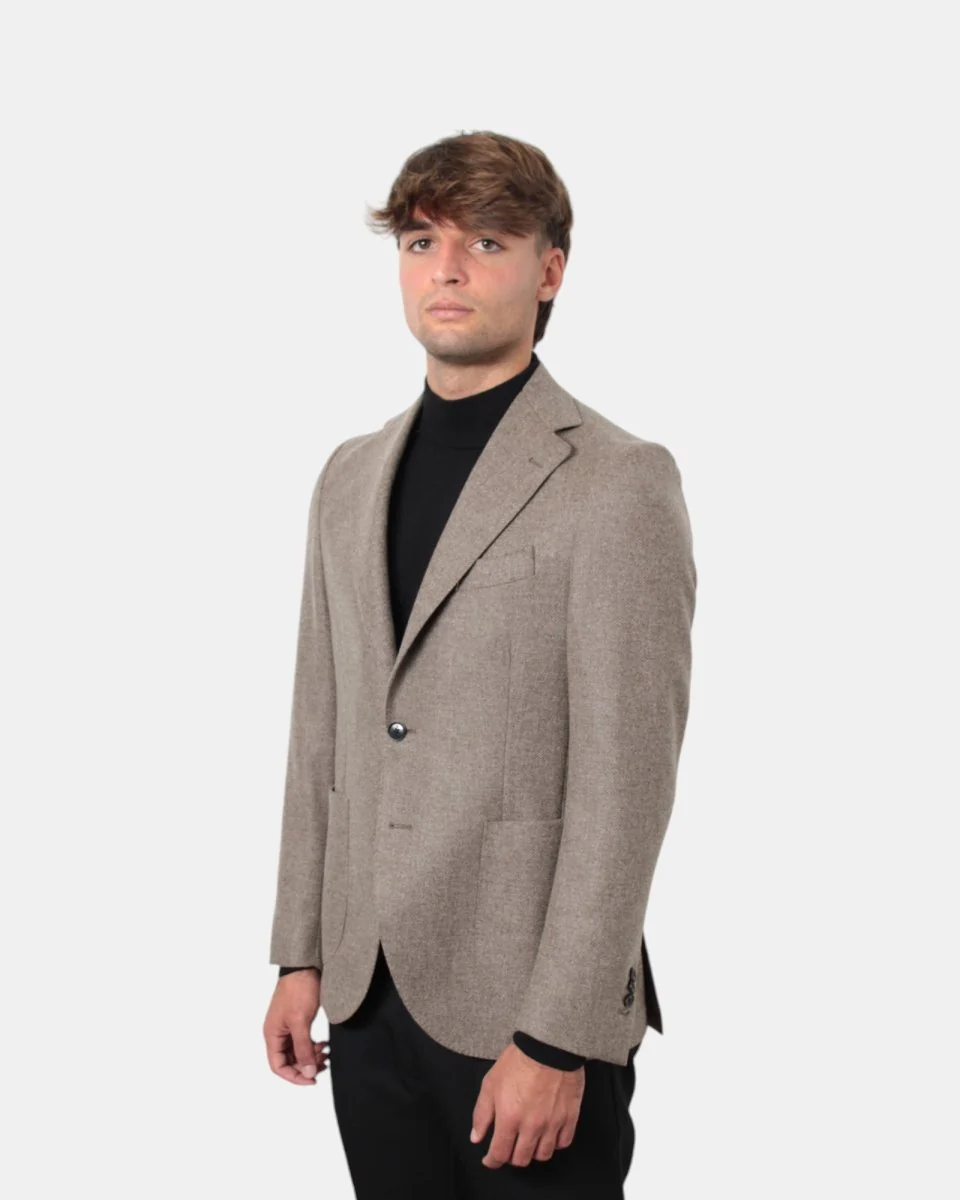 Il blazer in lana con rever classico di Bollani presenta chiusura a due bottoni, con tasche a toppa, due spacchi laterali. Il modello è alto 179 cm e indossa una taglia 48. Il tessuto esterno della giacca è composto per il 94% da lana e 6% cashmere, la fodera è 100% viscosa. Si consiglia lavaggio a secco