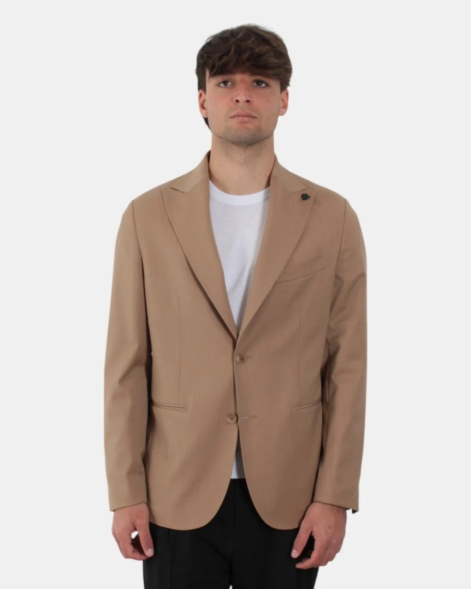 Il blazer monopetto di Bottega Marchigiana presenta chiusura a due bottoni, due tasche frontali, taschino sul petto, due spacchi sul retro, dalla mano fresca dovuta alla sua composizione in 90% lana, 8% poliestere e 2% elastan. Si consiglia il lavaggio a mano. Il modello è alto 1,78 m e indossa una 50