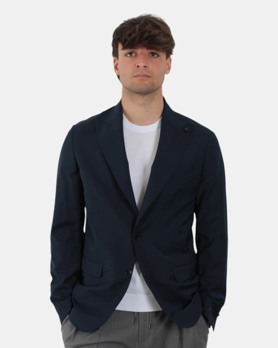 Il blazer monopetto di Bottega Marchigiana presenta chiusura a due bottoni, due tasche frontali con pattina, taschino sul petto, due spacchi sul retro, dalla mano fresca dovuta alla sua composizione in 90% lana, 8% poliestere e 2% elastan. Si consiglia il lavaggio a mano. Il modello è alto 1,78 m e indossa una 50