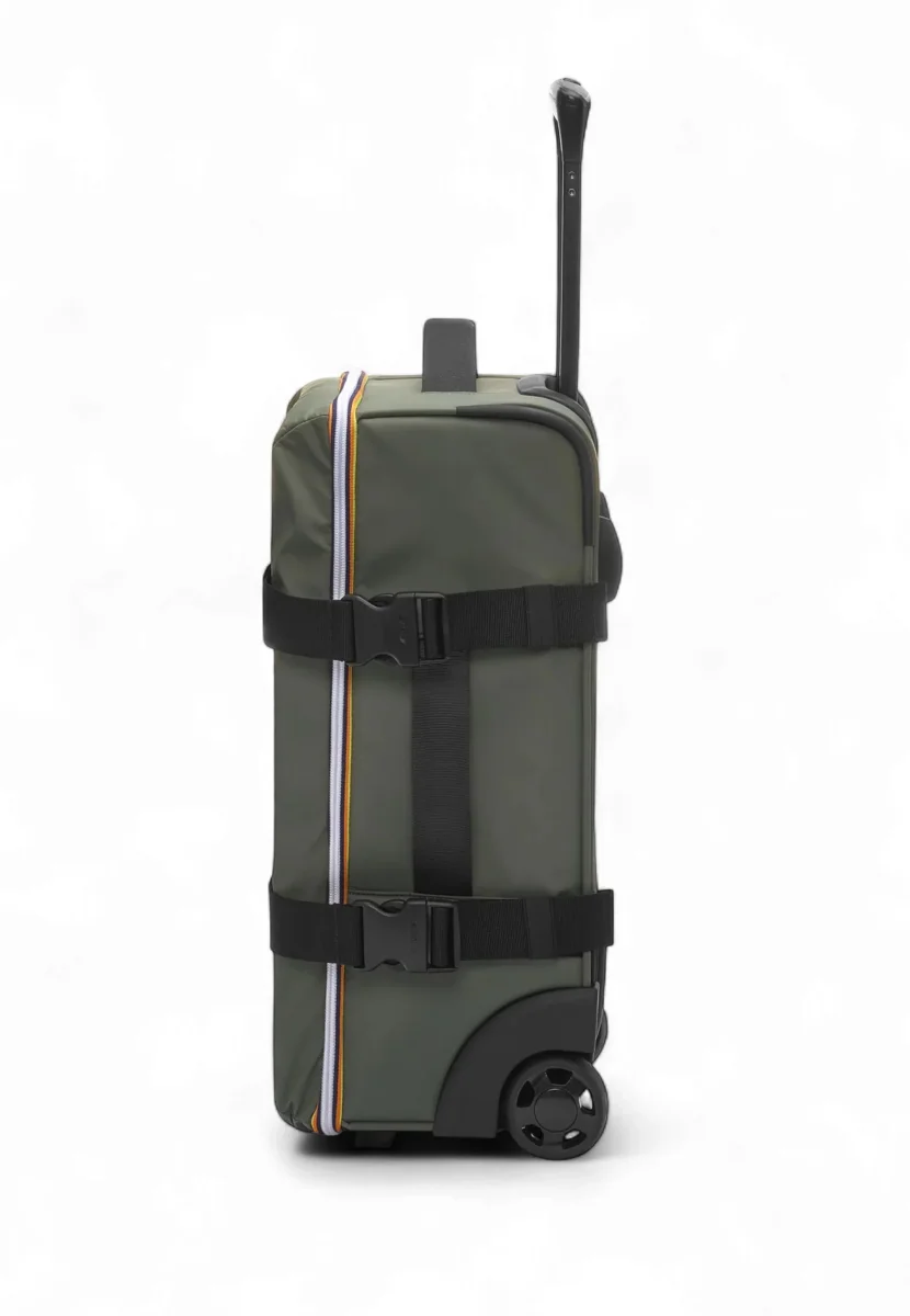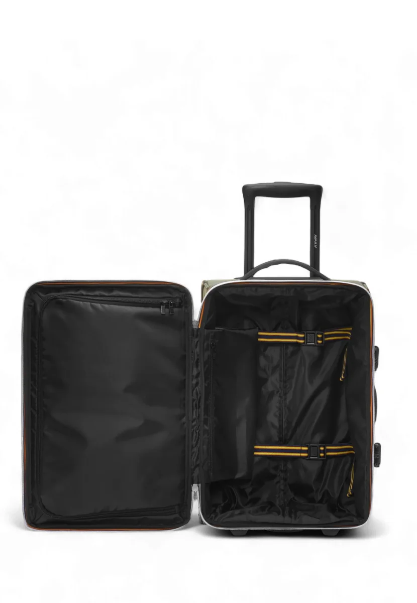 Realizzato in nylon ripstop impermeabile, idrorepellente e antivento, è rinforzato alla base per una maggiore durata nel tempo. Dotato di due ruote scorrevoli, manico rigido estraibile, maniglie laterale e superiore, garantisce massima maneggevolezza e versatilità. All’interno, scomparti multifunzionali permettono di organizzare al meglio ogni oggetto, mentre la tasca frontale con zip e la chiusura con zip K-Way a doppio cursore aggiungono praticità e sicurezza.