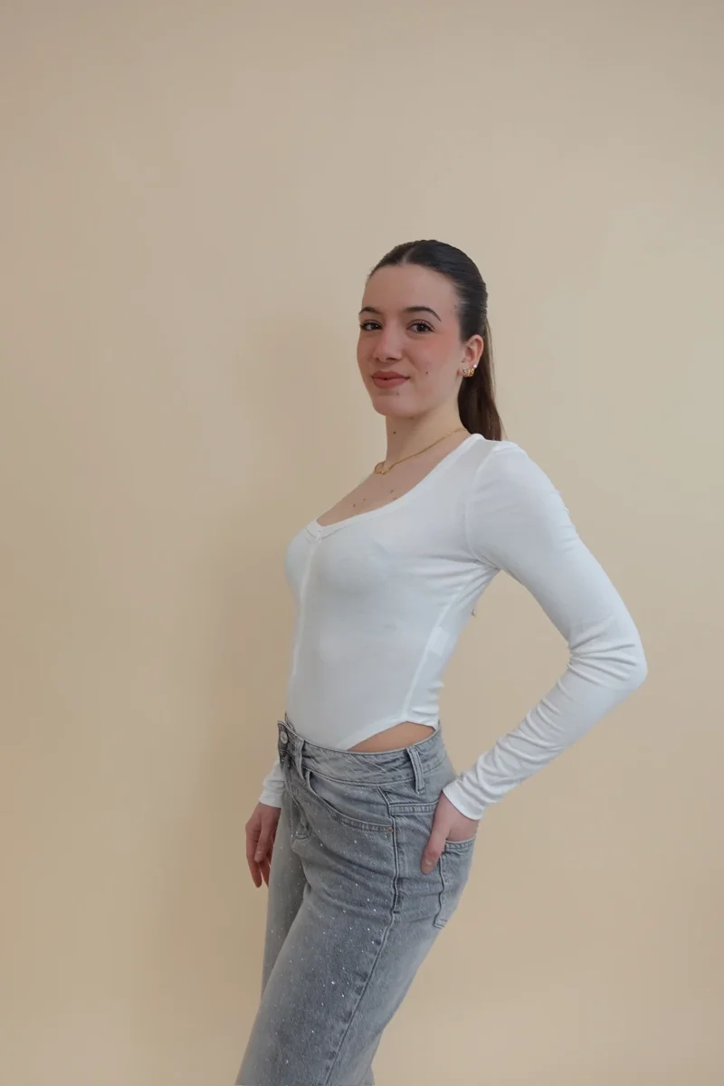Body a vita alta con bottoncini sul davanti