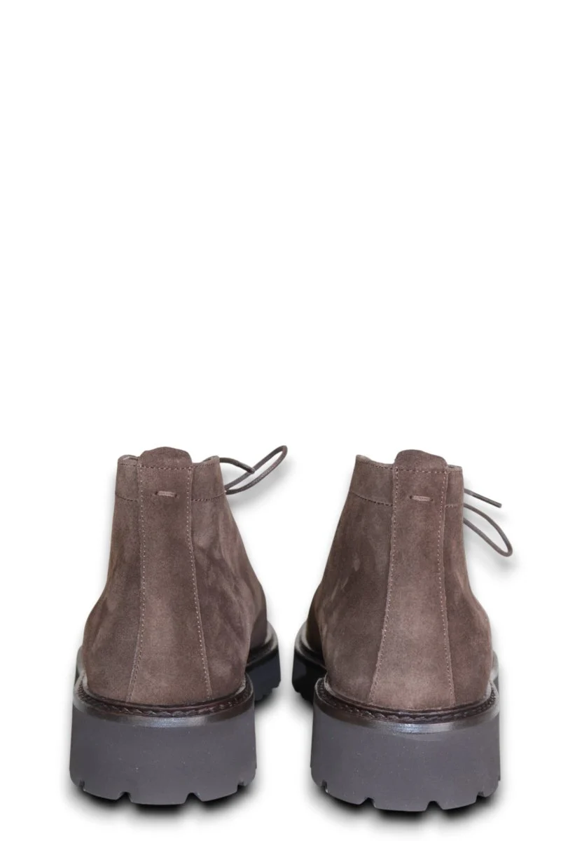 Le Stringate Boris di Calce reinterpretano il classico derby in versione stivaletto, unendo eleganza e solidità in un design deciso. Realizzate nel profondo tono fox testa di moro, queste scarpe presentano una linea pulita ma robusta, perfetta per affrontare con stile le sfide quotidiane. La suola Carrarmato conferisce carattere, aderenza e stabilità, rendendole ideali anche per le stagioni più fredde o i contesti urbani dinamici.