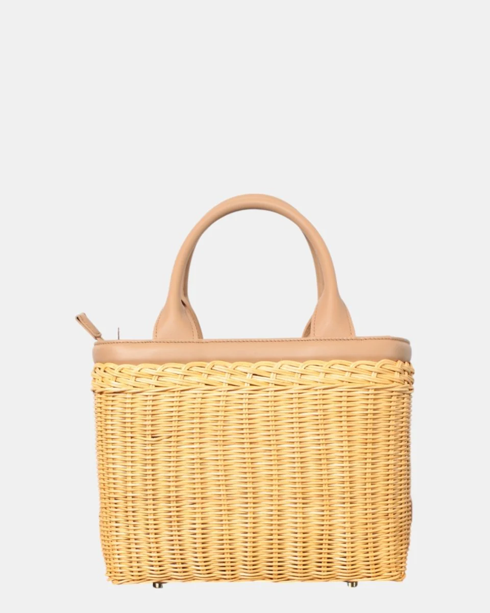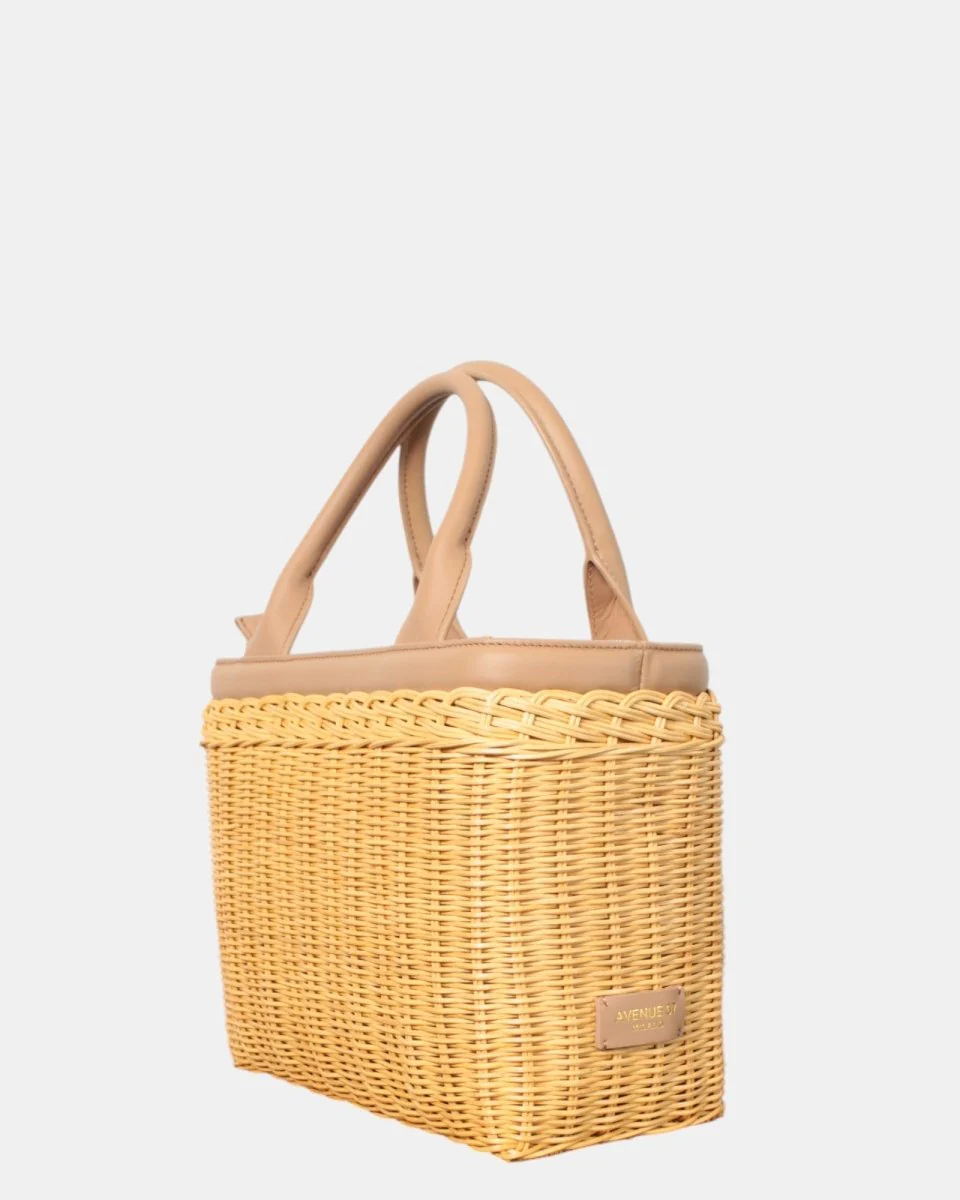 La borsa di Avenue 67 presenta una struttura rigida in midollino con doppio manico, unico vano interno, tasca con zip e tasca portaoggetti. Dotata di tracolla rimovibile e regolabile.