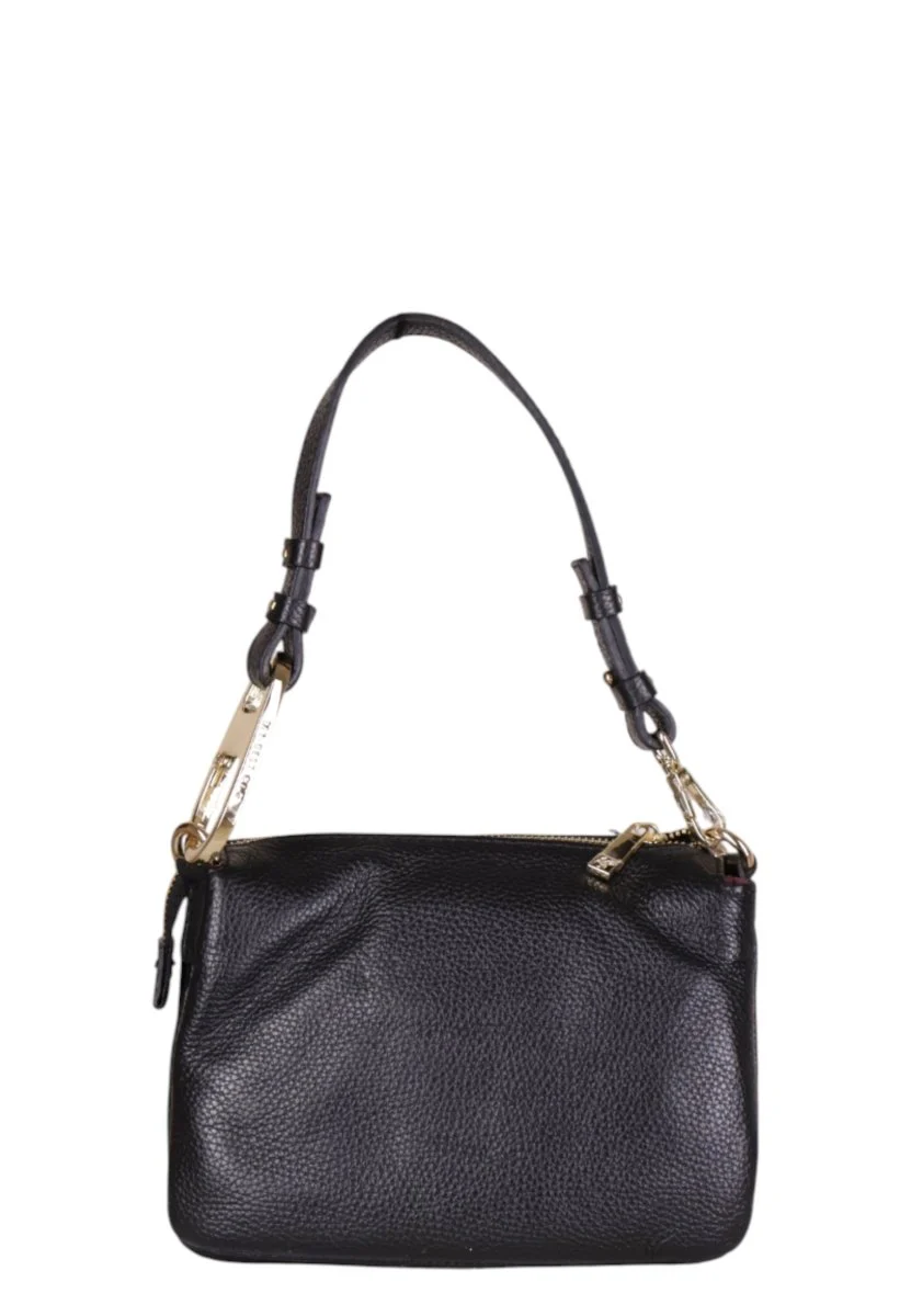 Realizzata in pelle martellata di alta qualità, presenta un design trio mini con tre scomparti separati e chiusura con zip, ideale per organizzare al meglio tutto il necessario.