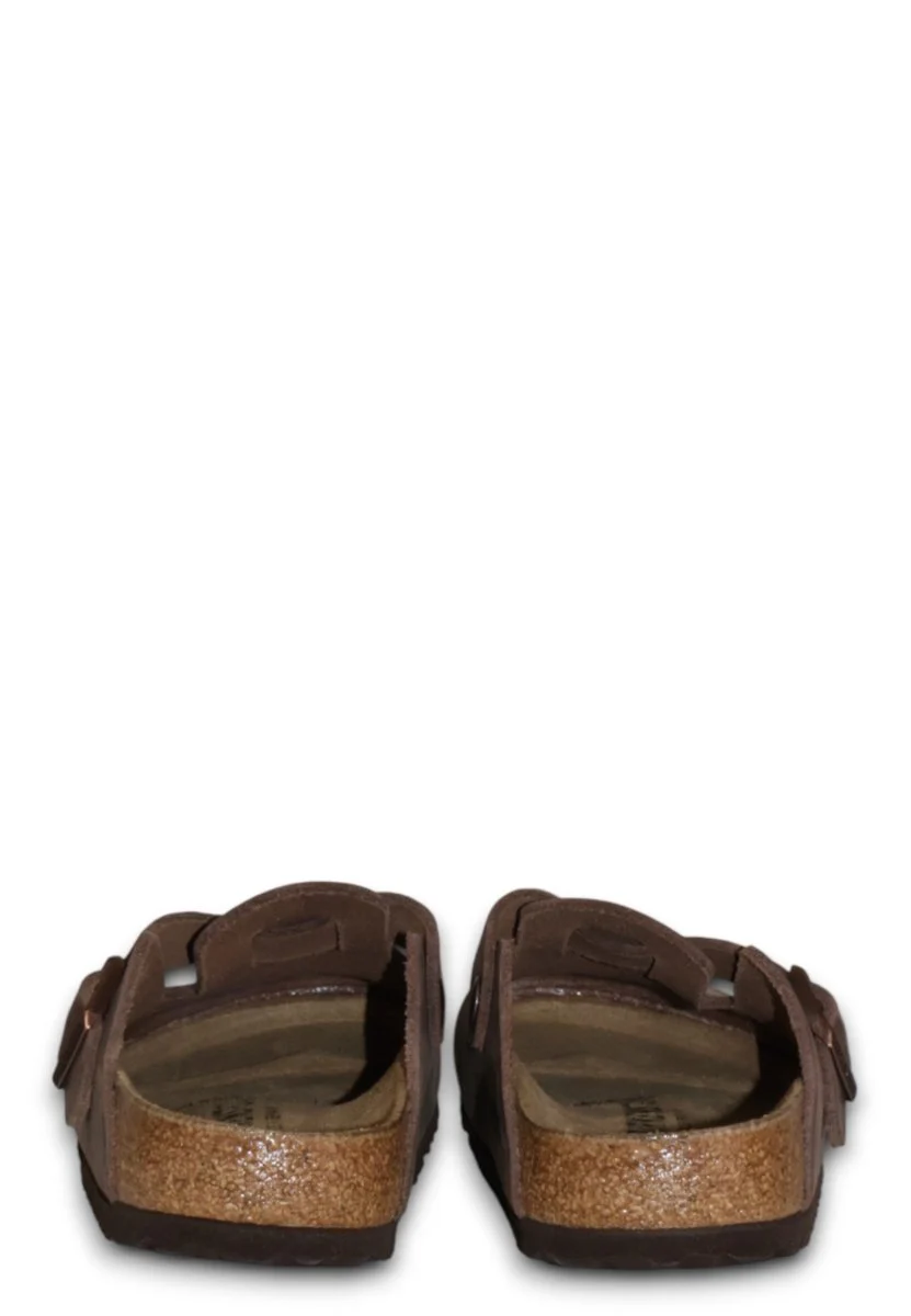 birkenstock boston è un classico intramontabile, ideale da indossare tutto l’anno grazie al suo design versatile e regolabile. la tomaia in pelle nabuk oleata, spessa e priva di cuciture, unisce resistenza e comfort, avvolgendo il piede in modo naturale. il plantare anatomico in sughero e lattice garantisce sostegno ottimale e benessere durante tutta la giornata, mentre il sottopiede in pelle scamosciata aggiunge morbidezza e traspirabilità. la suola in eva leggera e flessibile e il cinturino con fibbia in metallo regolabile completano la calzatura, rendendo birkenstock boston originale, made in germany, la scelta perfetta per chi cerca qualità, comfort e stile senza tempo.