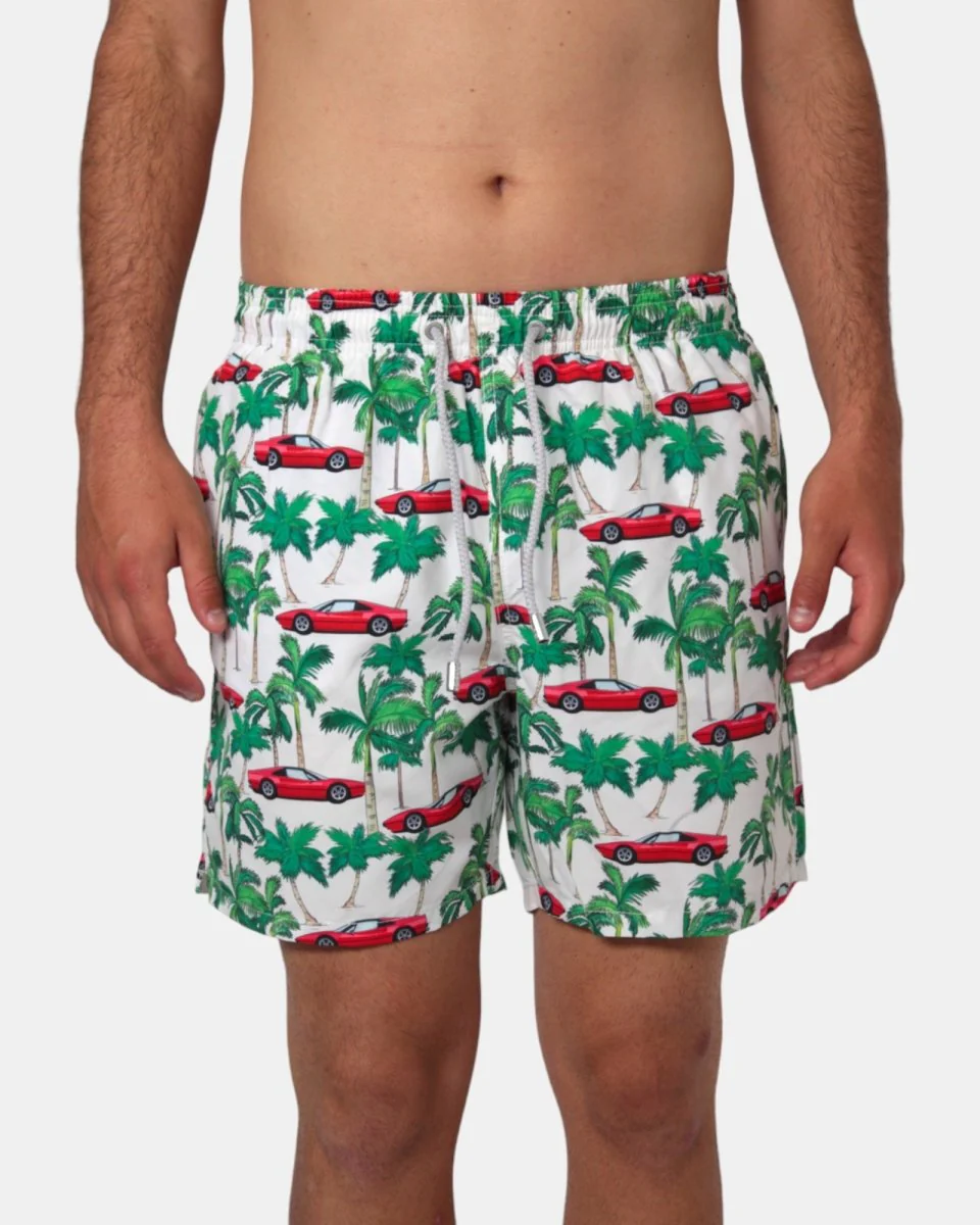 – DETTAGLI:stampa allover a fantasia, fodera in rete interna, elastico in vita con coulisse regolabile, tasche a filo laterali, e tasca a patta con chiusura velcro posteriore