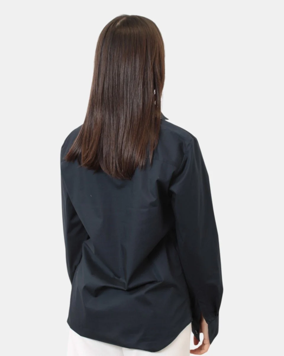 La camicia di Brio presenta chiusura a sei bottoni, fantasia monocolore, dalla mano fresca dovuta alla sua composizione in 100% cotone . Si consiglia lavaggio a mano. La modella è alta 1,68 m e indossa una 40