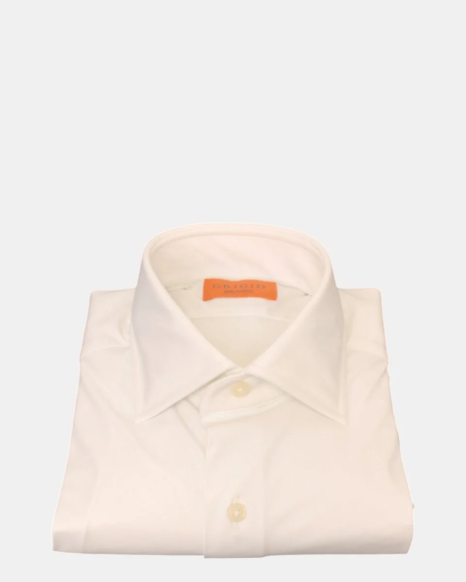 La camicia di Grigio presenta:– DETTAGLI: manica lunga, collo francese e bottone in madreperla– COMPOSIZIONE: 76% nylon e 24% spandex– VESTIBILITA: Regolare– LAVAGGIO: lavare il capo a mano