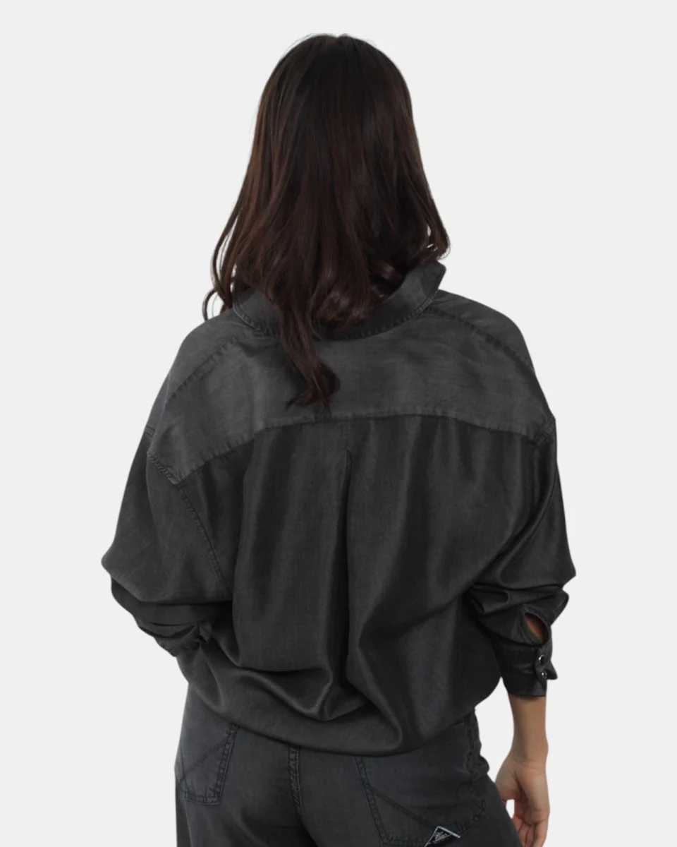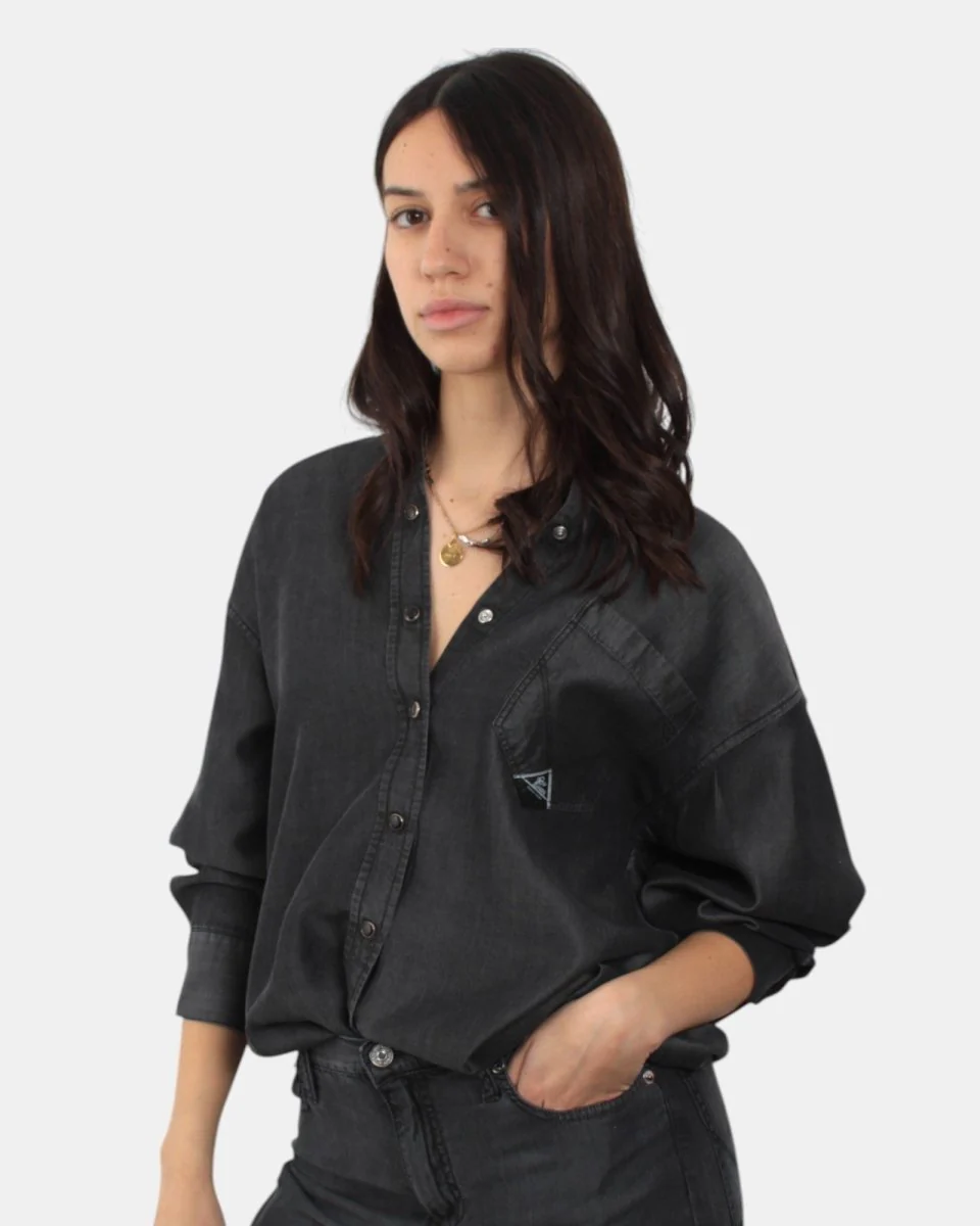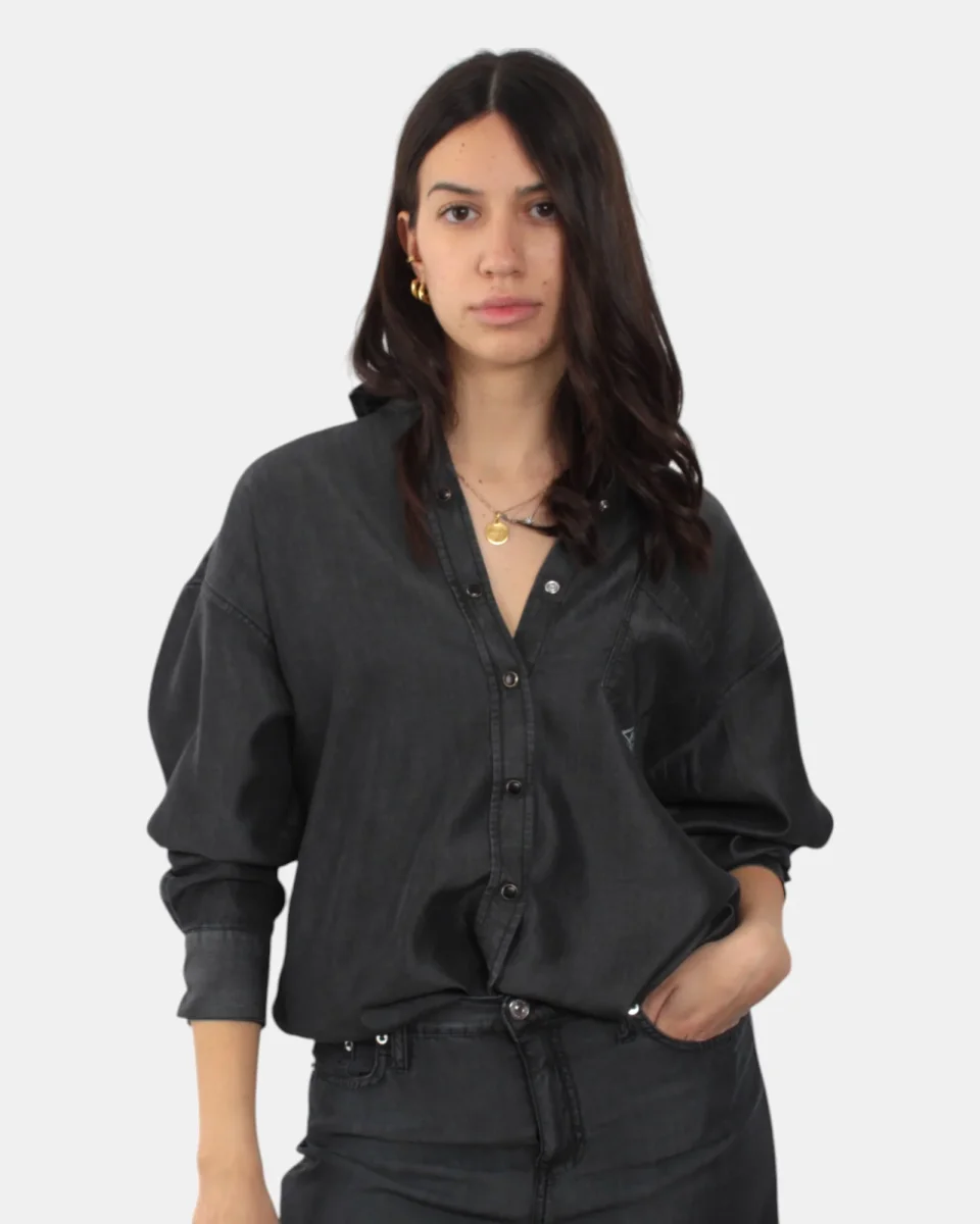La camicia di Roy Roger’s presenta chiusura frontale a sette bottoni, una tasca a toppa frontale con dettaglio brand, colletto, manica regolabile con bottone, dalla mano fresca dovuta alla sua composizione in 100% lyocell. Si consiglia lavaggio a massimo 30 gradi. La modella è alta 1,68 m e indossa una S