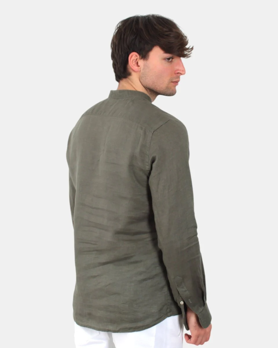 La camicia a manica lunga di Outfit presenta chiusura a sei bottoni, colletto coreano, dalla mano fresca dovuta alla sua composizione in 100% lino. Si consiglia lavaggio a massimo 30 gradi. Il modello è alto 1,78 m e indossa una M