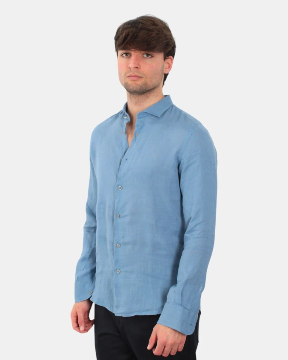 La camicia a manica lunga di Outfit presenta chiusura a sei bottoni, colletto alla francese, dalla mano fresca dovuta alla sua composizione in 100% lino. Si consiglia lavaggio a massimo 30 gradi. Il modello è alto 1,78 m e indossa una M