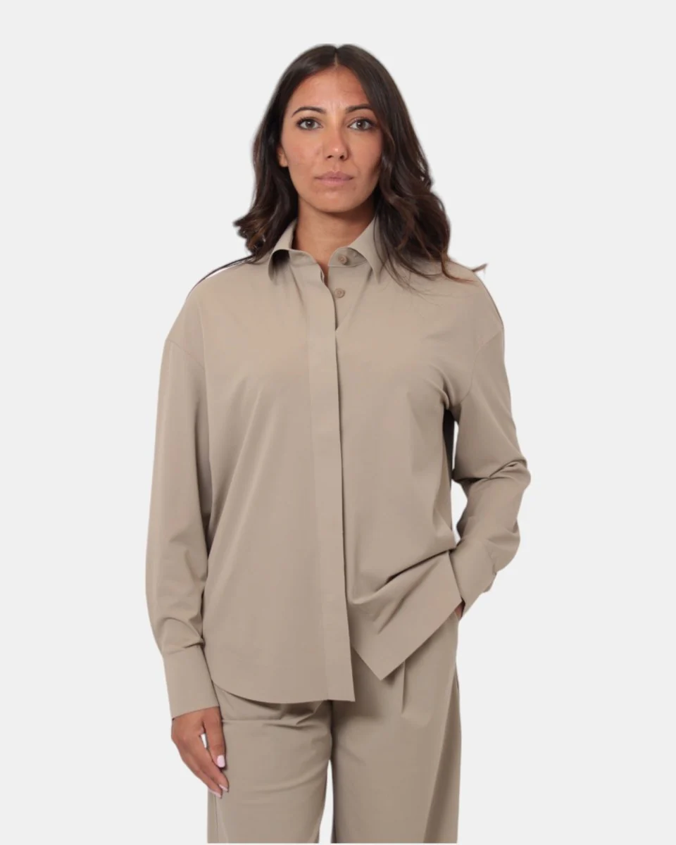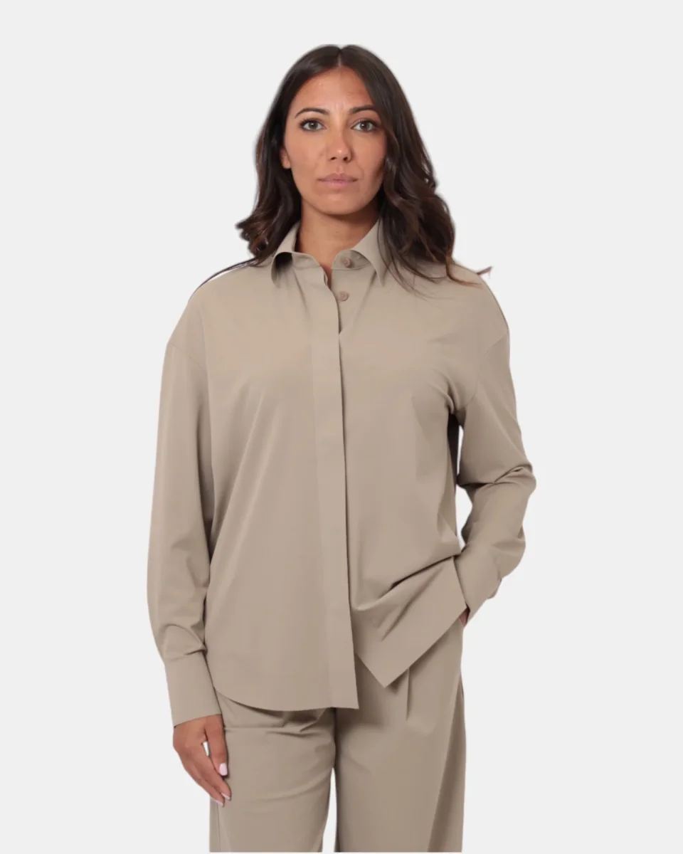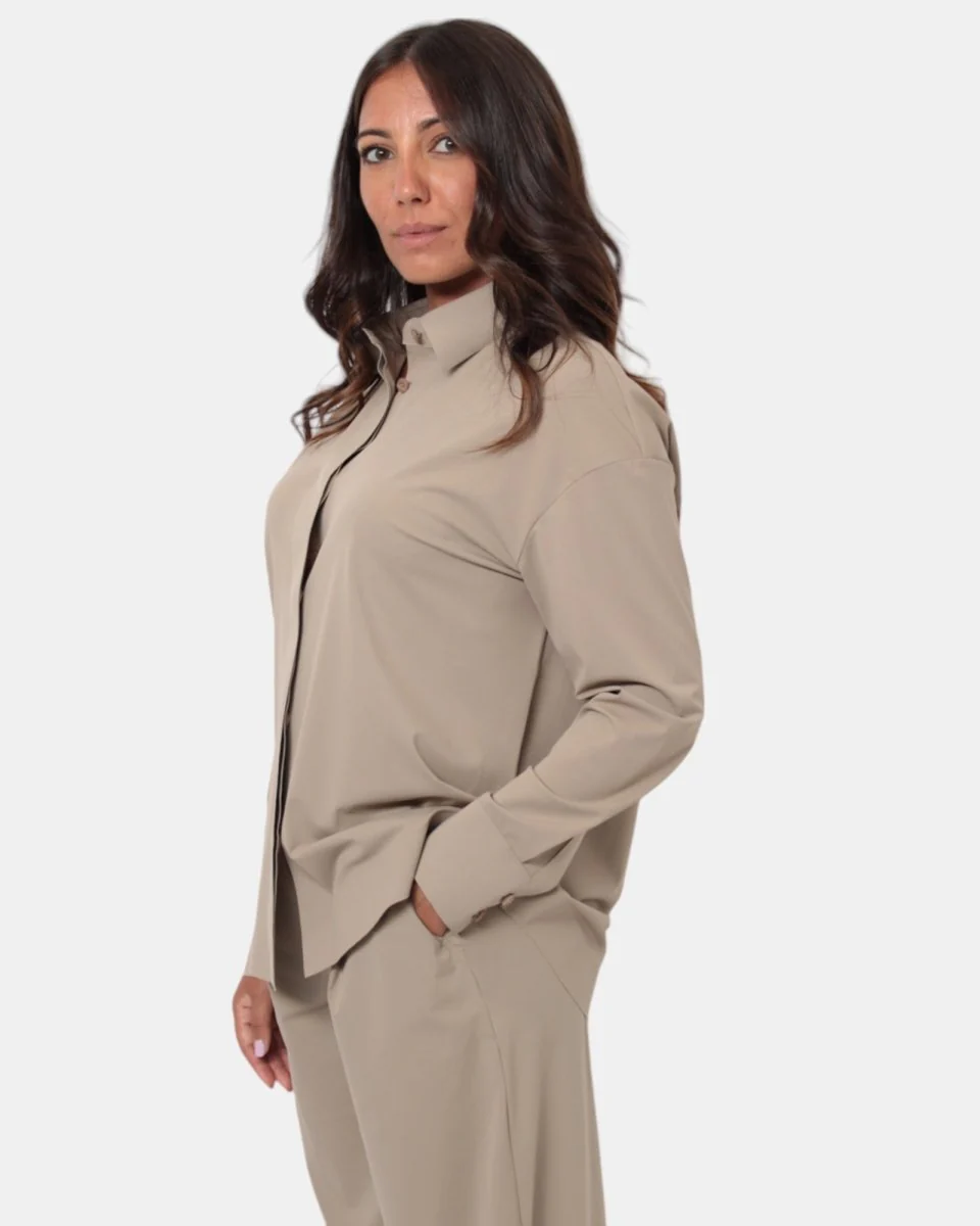 Colore: Disponibile in tonalità beige che si abbina facilmente a pantaloni, gonne o jeans, rendendola un elemento essenzia