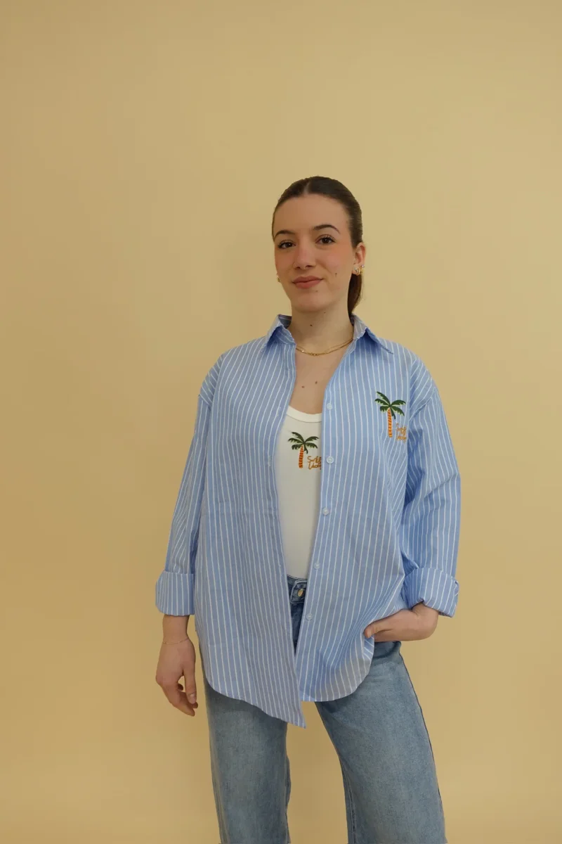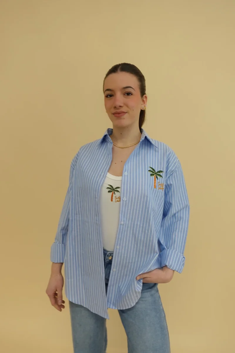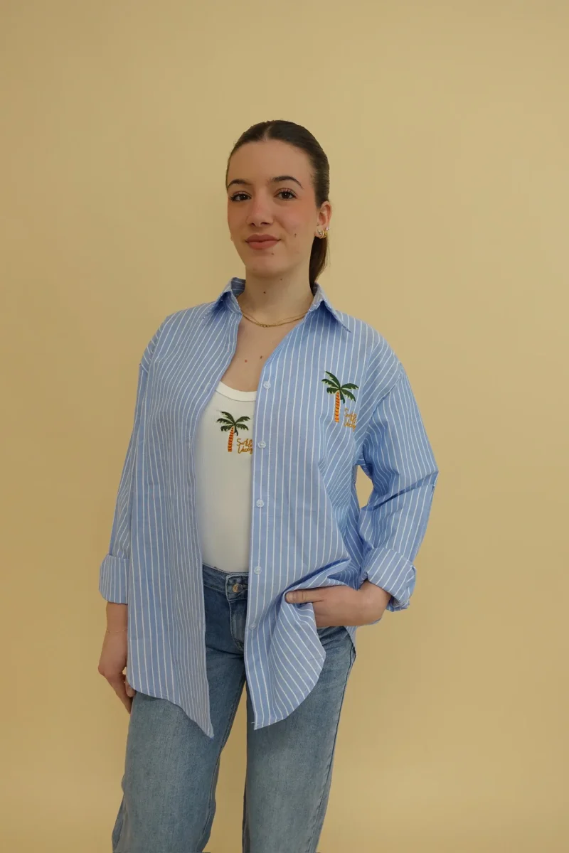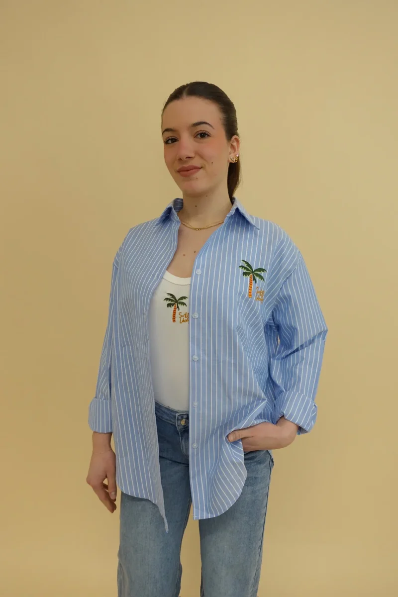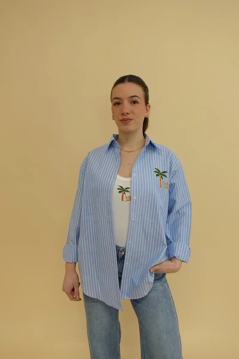 Set coordinato composto da canotta a costine + camicia oversize a righe