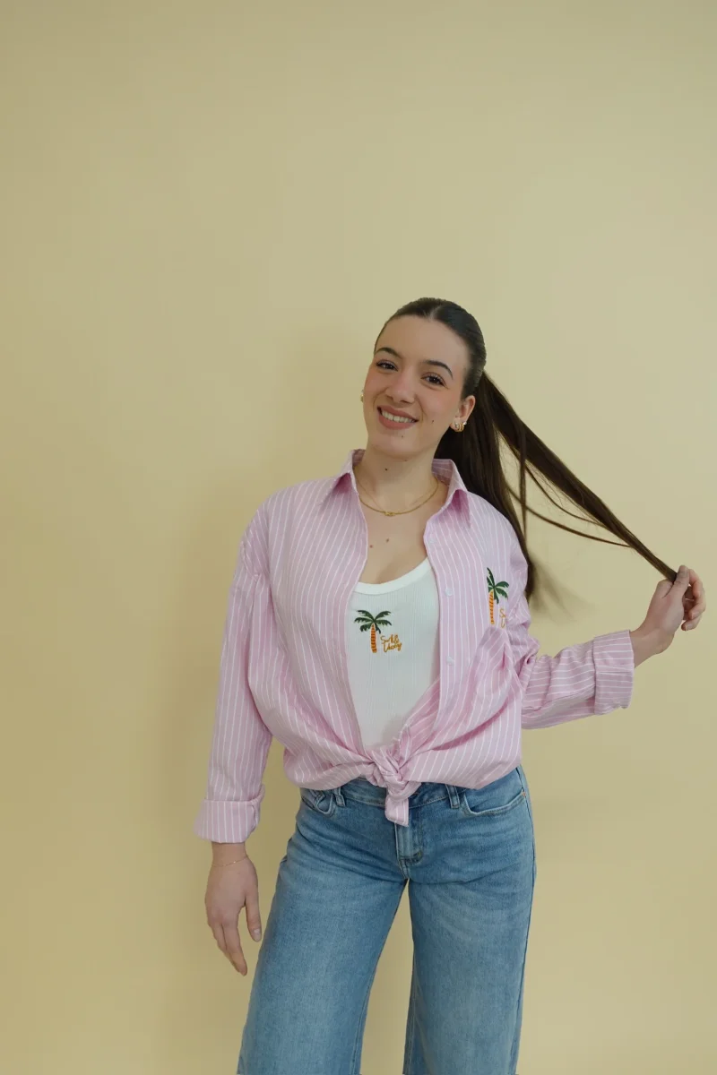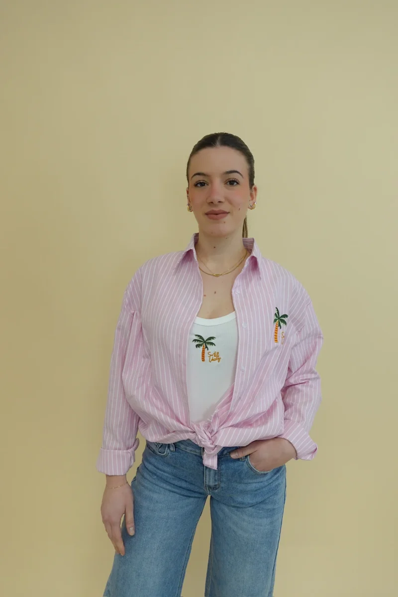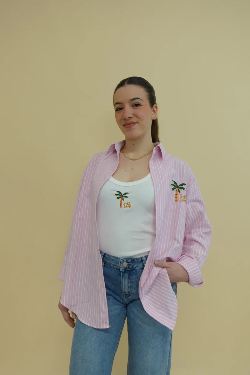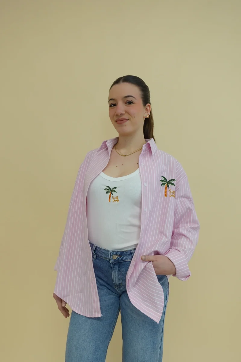 Set coordinato composto da canotta a costine + camicia oversize a righe