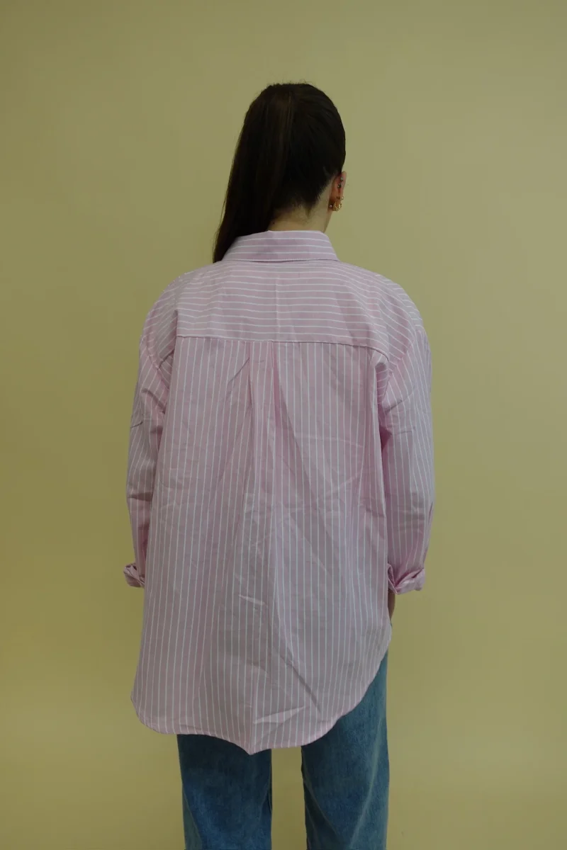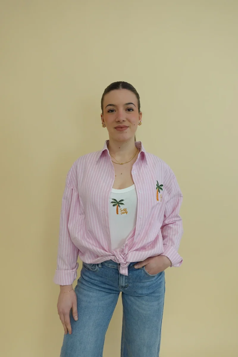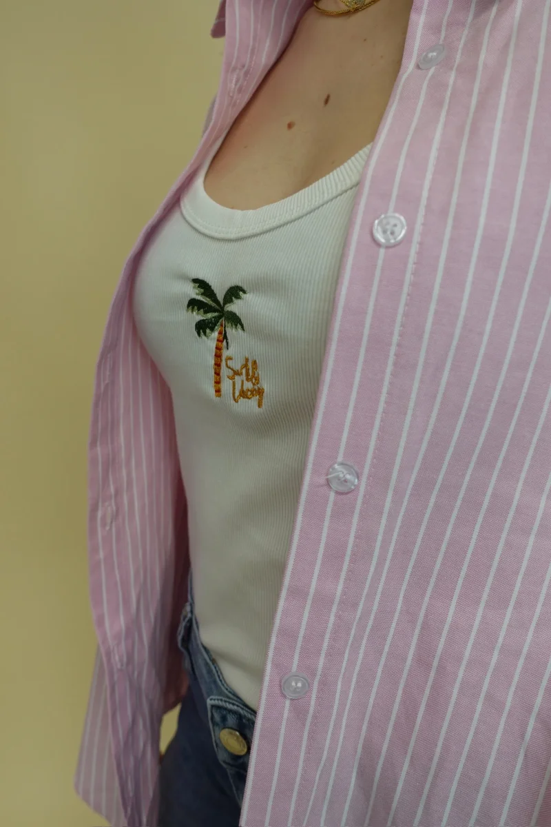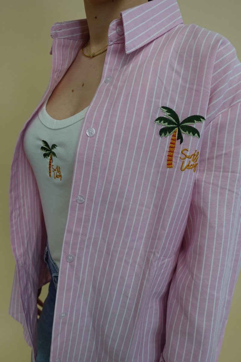 Set coordinato composto da canotta a costine + camicia oversize a righe