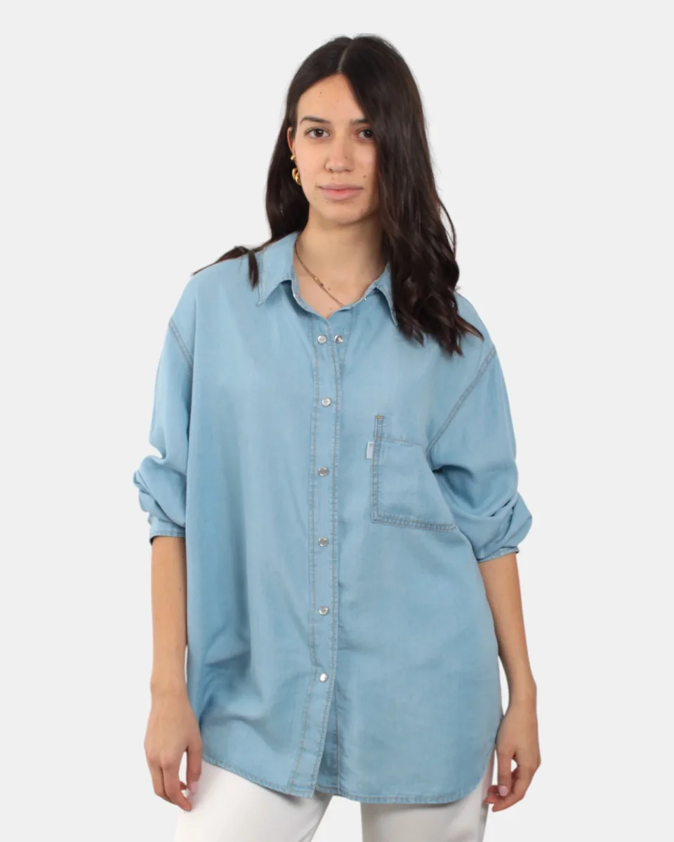 La camicia di People presenta chiusura a sette bottoni, taschino frontale, dalla mano fresca dovuta alla sua composizione in 100% lyocell. Si consiglia lavaggio a massimo 30 gradi. La modella è alta 1,68 m e indossa una S
