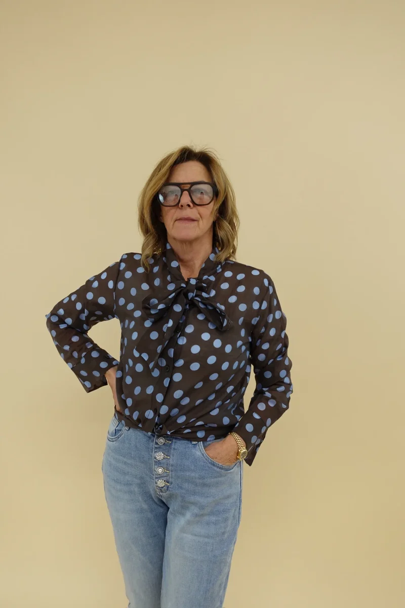 Camicia a pois leggermente velata, con fiocco sul davanti