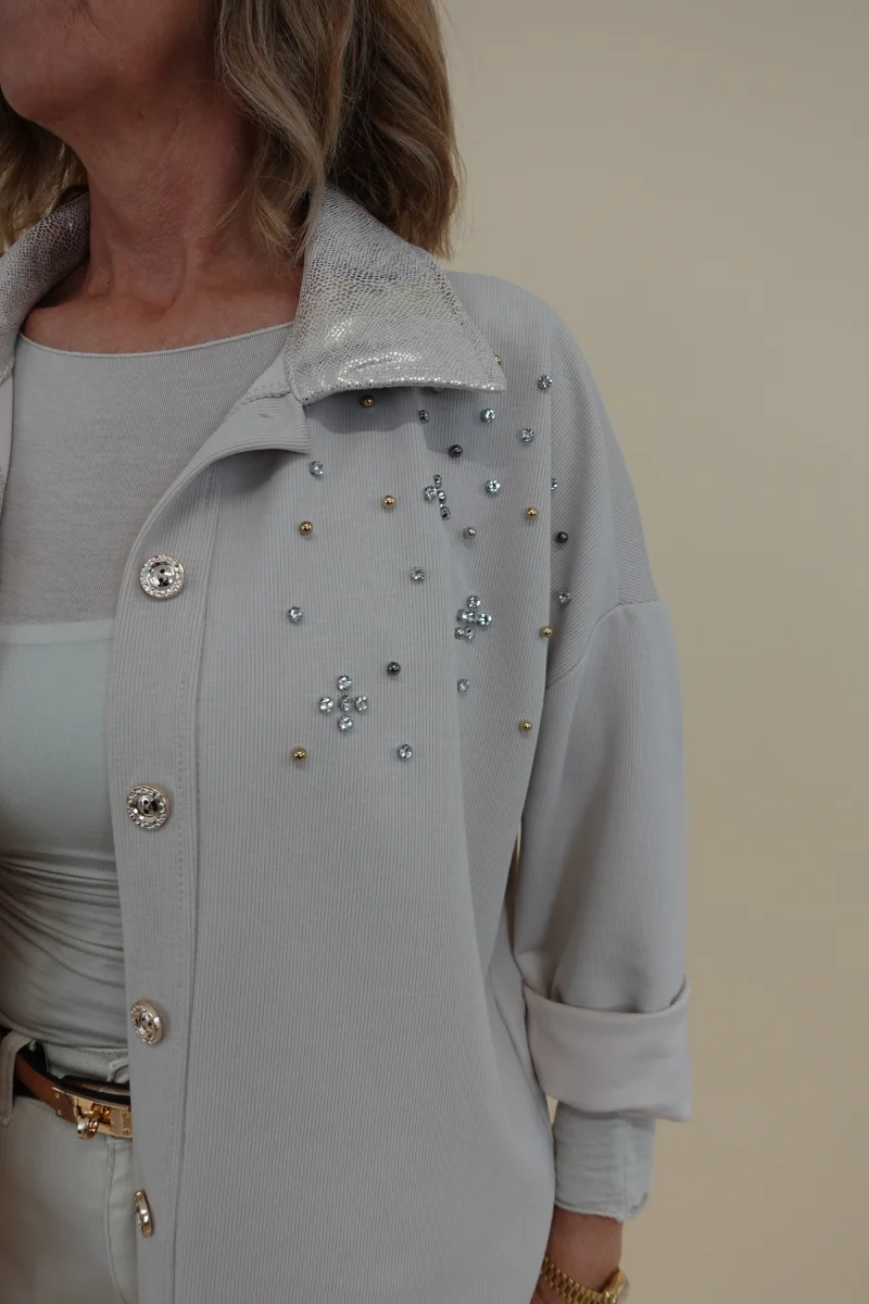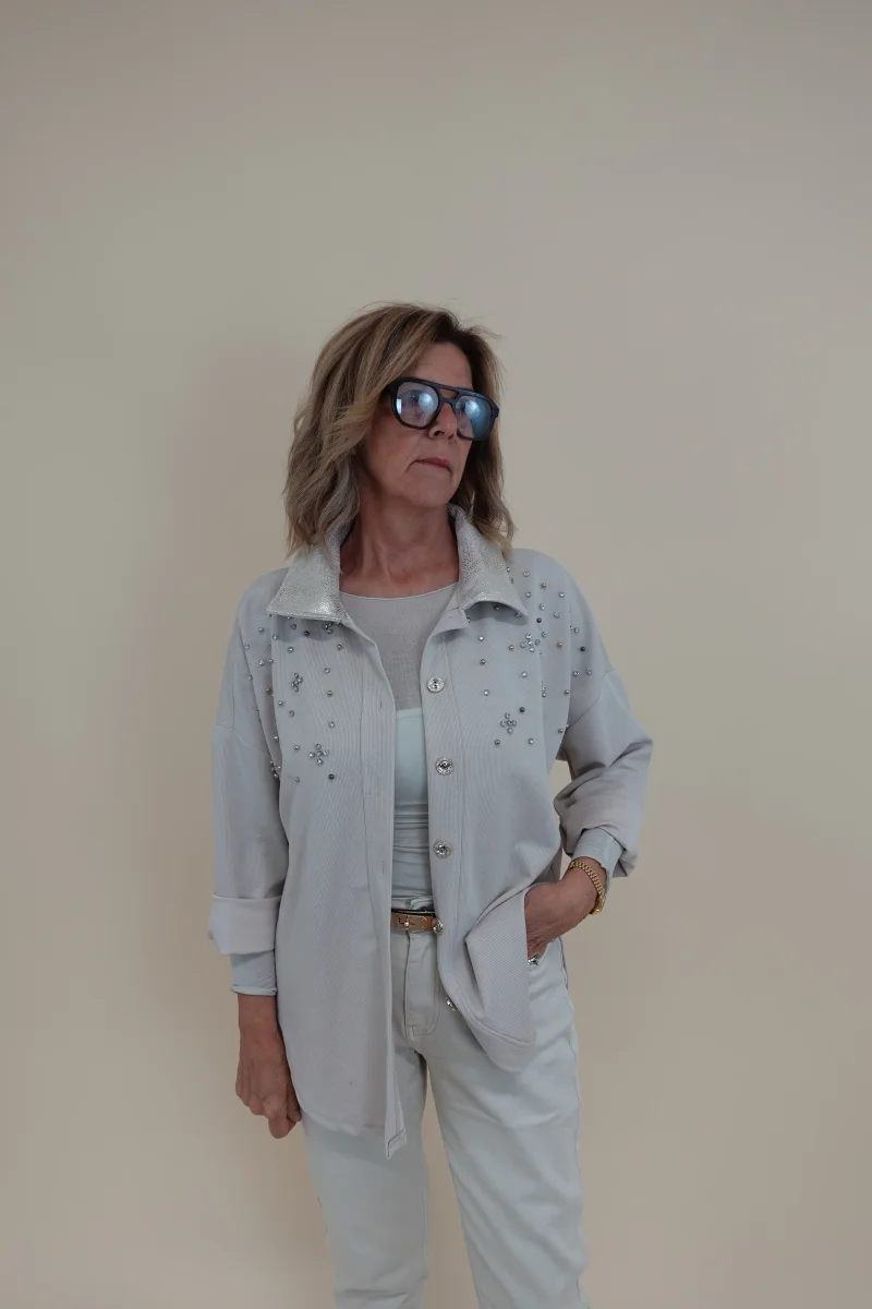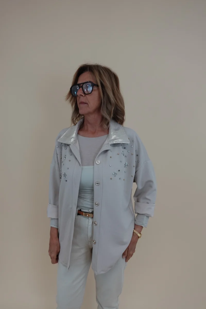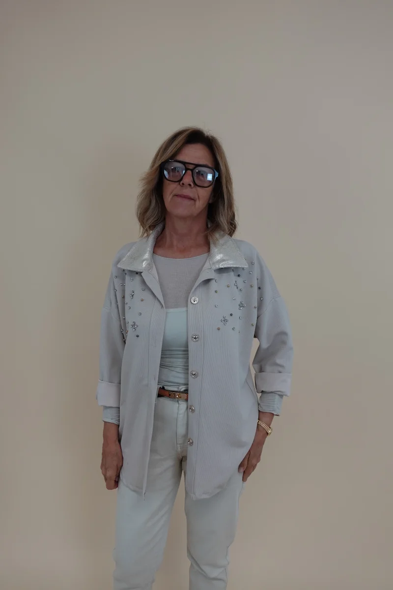 Camicia con applicazioni sul davanti e collo decorato