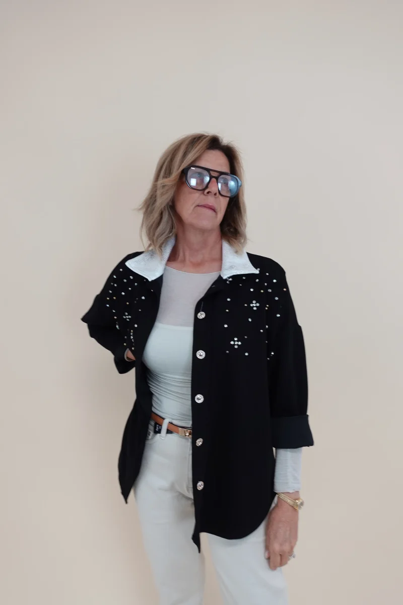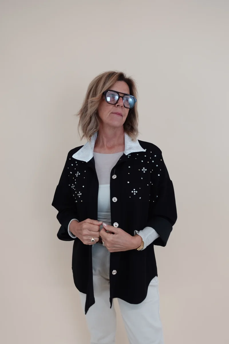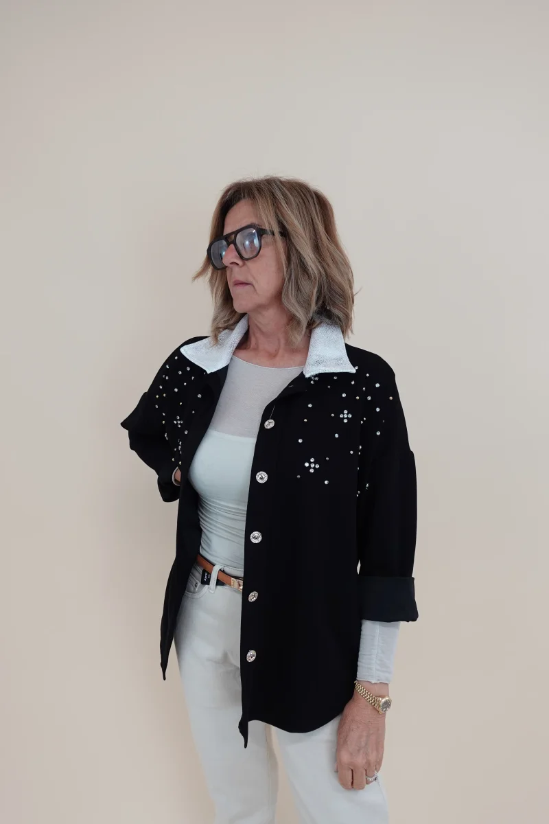 Camicia con applicazioni sul davanti e collo decorato