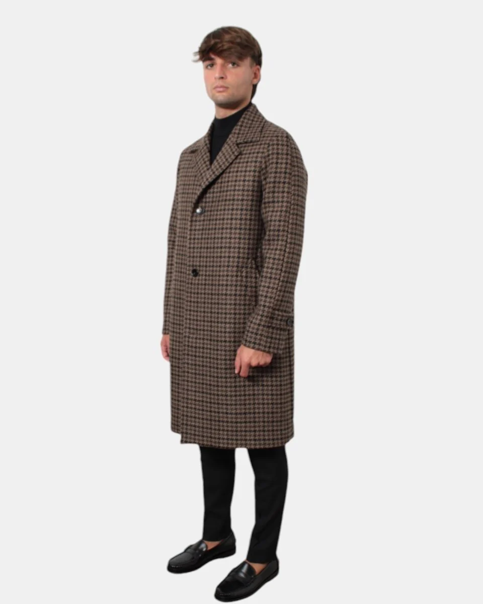 Capo dal fascino senza tempo data la fantasia pied de poule, esso presenta tasche a filo e passanti regolabili con bottoni sulle maniche.