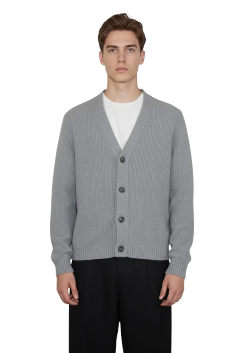Con la sua texture morbida e il design classico, è ideale per le giornate fresche. La lana merino assicura una sensazione di calore naturale, mantenendo il massimo comfort senza compromessi su stile e qualità. La chiusura a bottoni aggiunge un tocco di eleganza, rendendolo adatto sia per un look informale che più formale.